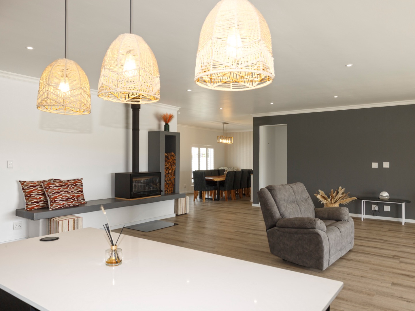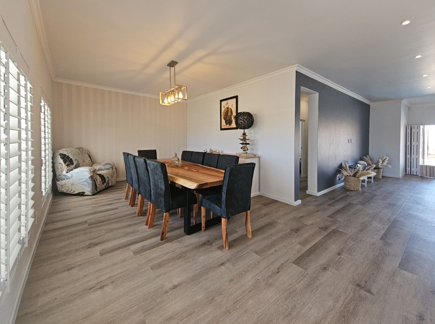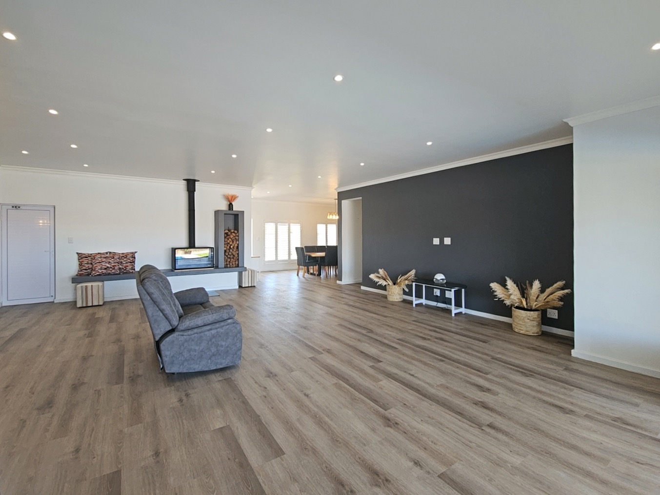 This newly built luxury home offers modern living at its best, set in a truly scenic and peaceful location in the heart of Langebaan. It features three generously sized bedrooms and three stylish bathrooms, two of which are en-suite. The open-plan lounge and dining area flow effortlessly into a beautifully designed kitchen with Caesarstone countertops, creating a warm and inviting living space. A striking fireplace adds to the home’s charm and comfort.