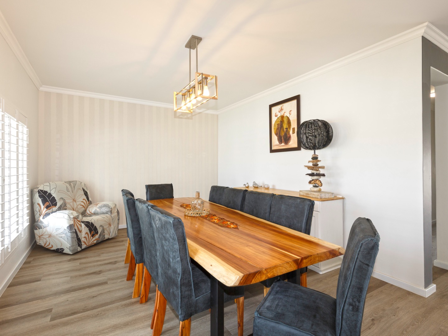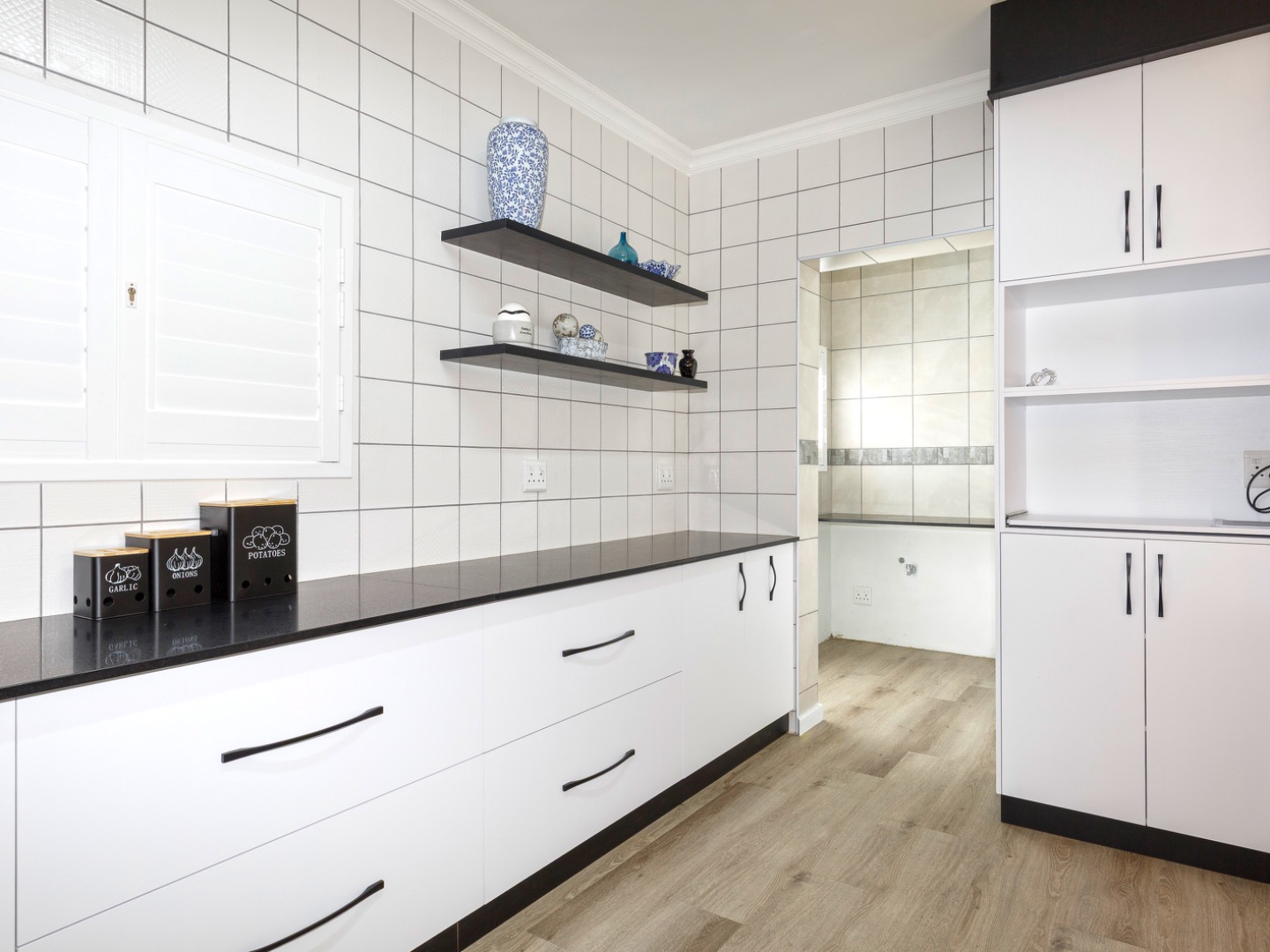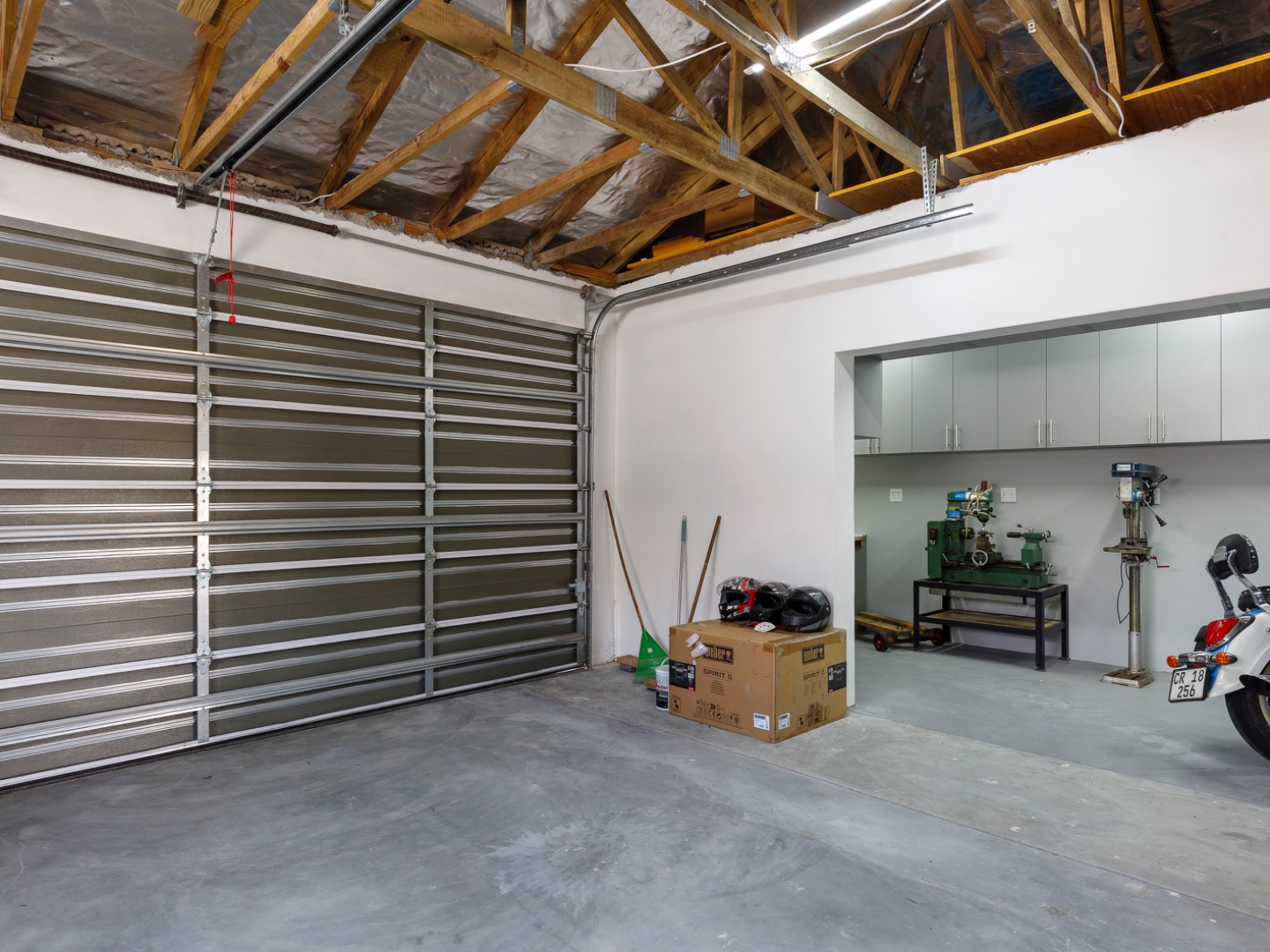 The double automated garage includes an extra side workshop, ideal for hobbies or additional storage. Designed for year-round enjoyment, the home boasts a heated swimming pool, perfect for all seasons. Solar panels with an inverter and battery system, along with a 10 000L water tank, ensure energy efficiency and peace of mind, while lockable shutters throughout the home provide added security.