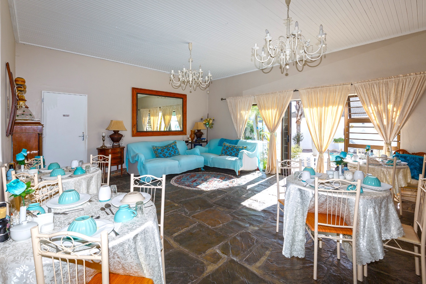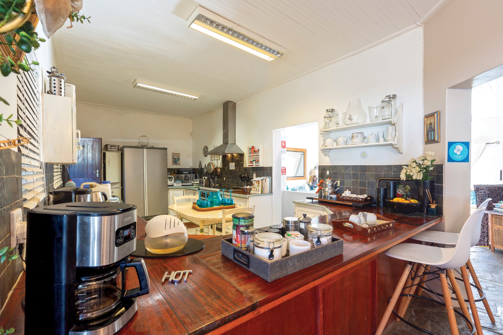 The graceful breakfast salon, overlooking the shimmering pool, creates a tranquil start to the day, while the formal dining room is perfect for private gatherings or group bookings. The gourmet kitchen, equipped with a gas stove, electric oven, hob, and ample storage, ensures smooth and seamless hospitality operations. Staff accommodation and a fully fitted laundry support efficient day-to-day management.
