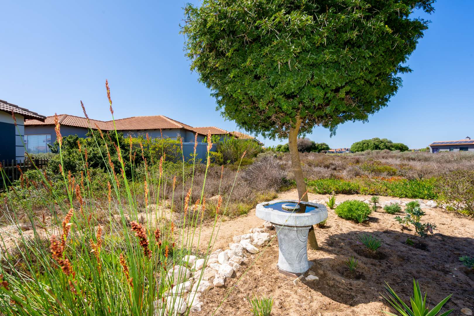 Enjoy the exclusive lifestyle that Langebaan Country Estate has to offer including 24/7 security, Gary Player 18-hole Black Knight Design golf course, driving range, running, walking and cycling trails, tennis courts, bowling green, swimming pool, Oxigym, restaurant and bar, Pro-Putt, not to mention the abundant fynbos and wildlife.
