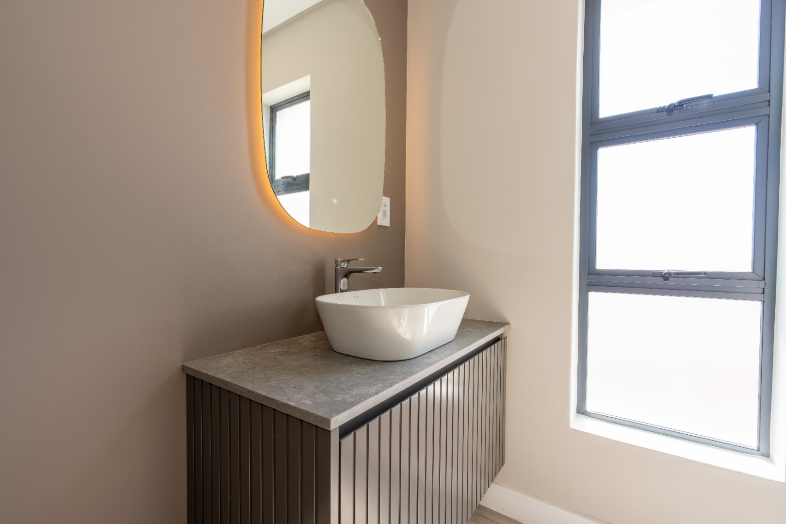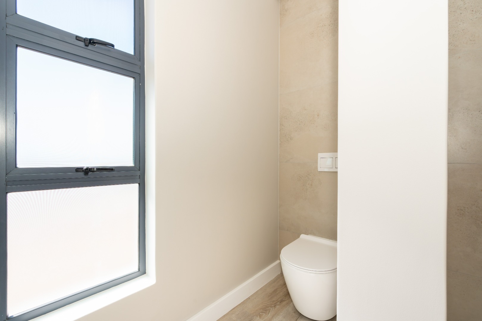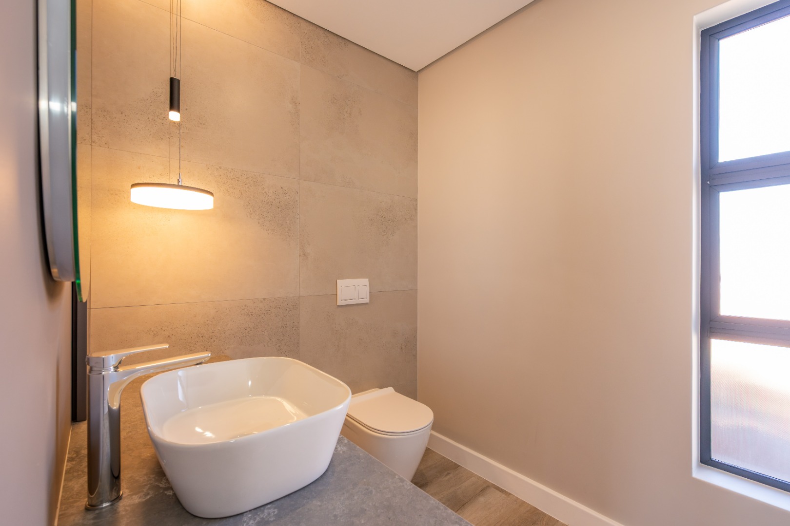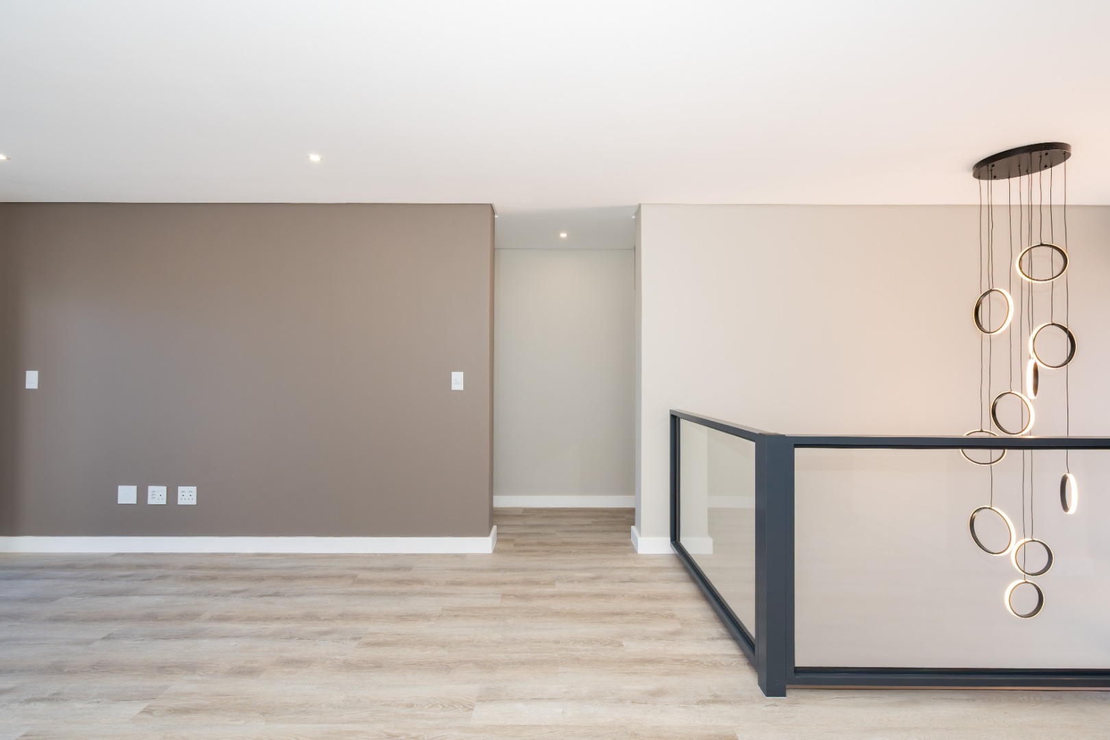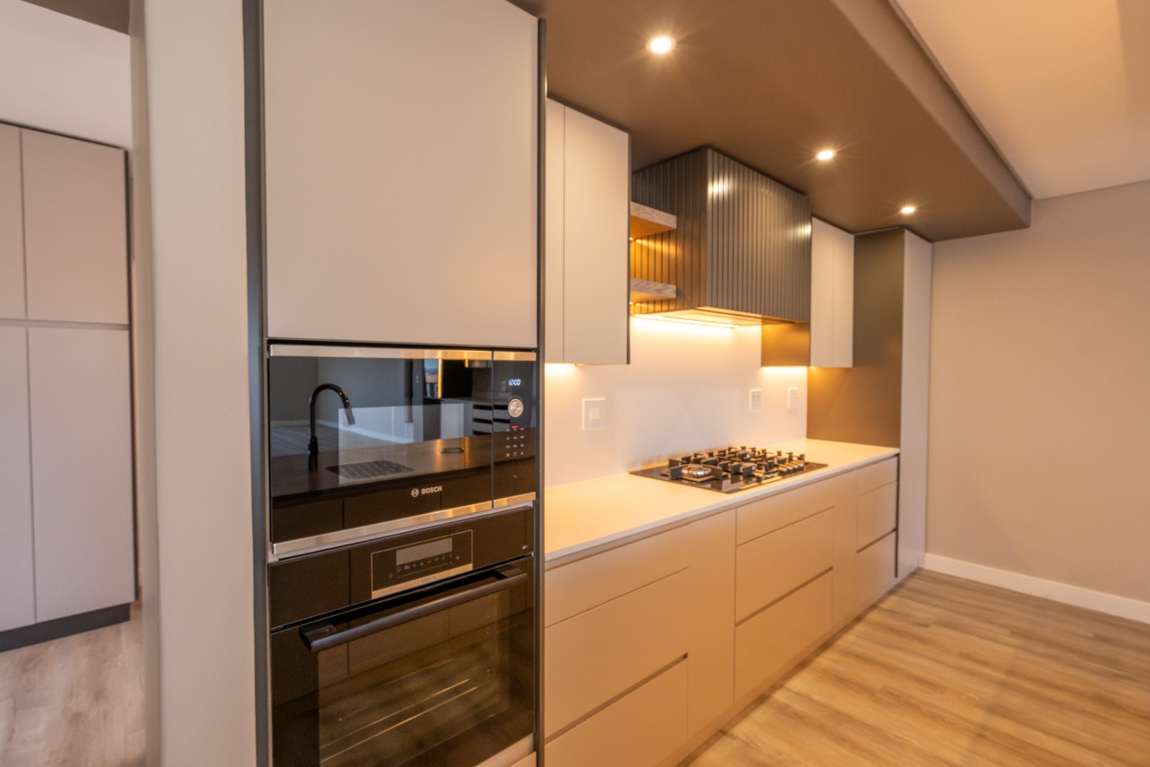 The exquisite kitchen is a true focal point, combining clean, modern design with everyday practicality. It is equipped with a Bosch electric oven, integrated microwave and air-fryer, as well as a five-plate gas hob. A separate scullery keeps the main kitchen space neat and functional, while a custom-designed wet bar with wine drawers and subtle lighting adds a sophisticated edge for entertaining. The ground floor also offers a well-appointed guest bedroom with its own en-suite bathroom, along with a conveniently located guest toilet.