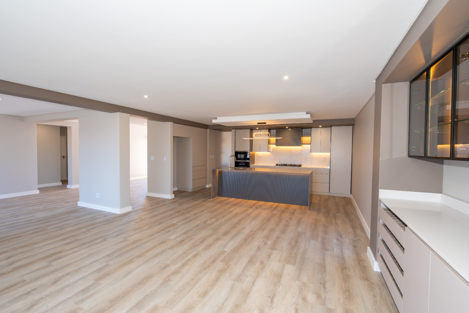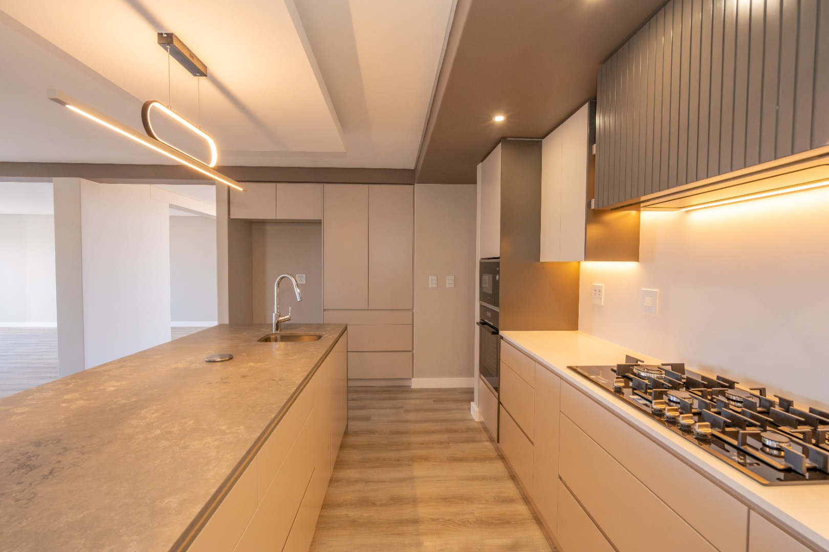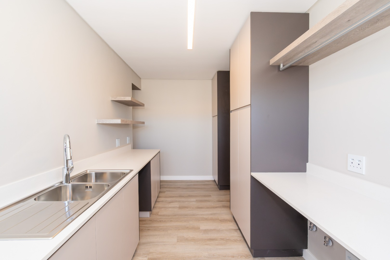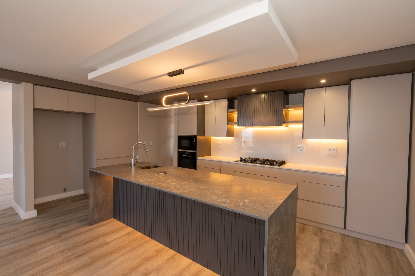 The exquisite kitchen is a true focal point, combining clean, modern design with everyday practicality. It is equipped with a Bosch electric oven, integrated microwave and air-fryer, as well as a five-plate gas hob. A separate scullery keeps the main kitchen space neat and functional, while a custom-designed wet bar with wine drawers and subtle lighting adds a sophisticated edge for entertaining. The ground floor also offers a well-appointed guest bedroom with its own en-suite bathroom, along with a conveniently located guest toilet.