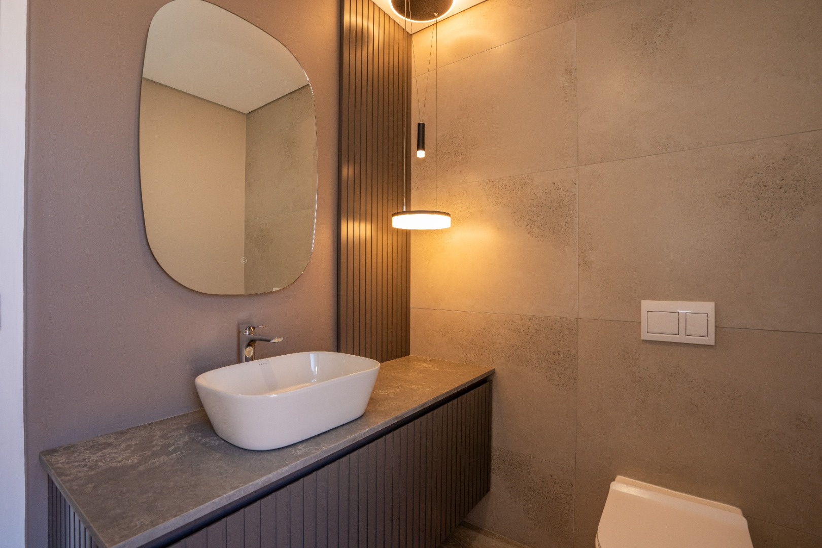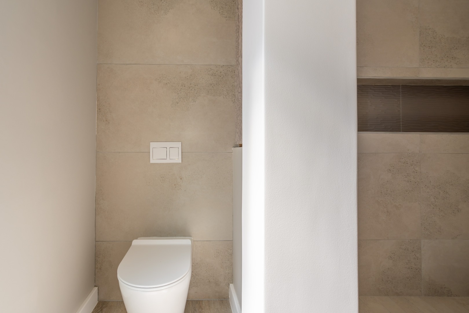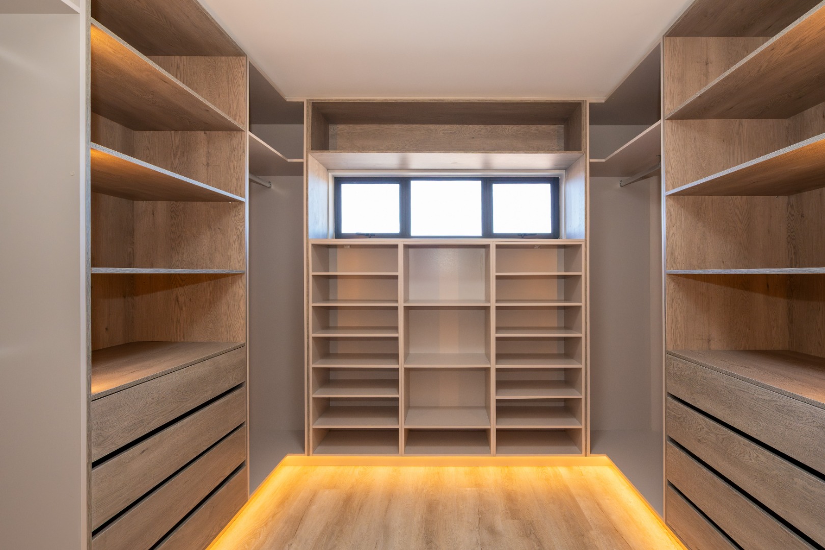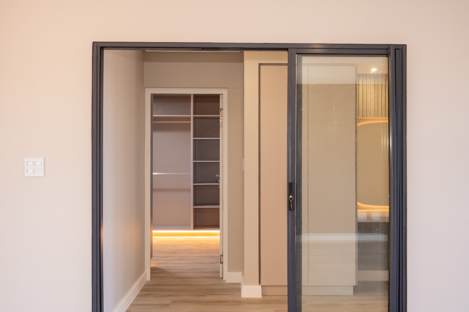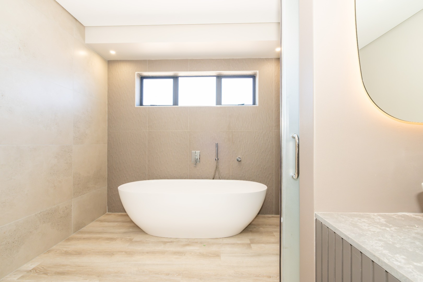 The exquisite kitchen is a true focal point, combining clean, modern design with everyday practicality. It is equipped with a Bosch electric oven, integrated microwave and air-fryer, as well as a five-plate gas hob. A separate scullery keeps the main kitchen space neat and functional, while a custom-designed wet bar with wine drawers and subtle lighting adds a sophisticated edge for entertaining. The ground floor also offers a well-appointed guest bedroom with its own en-suite bathroom, along with a conveniently located guest toilet.