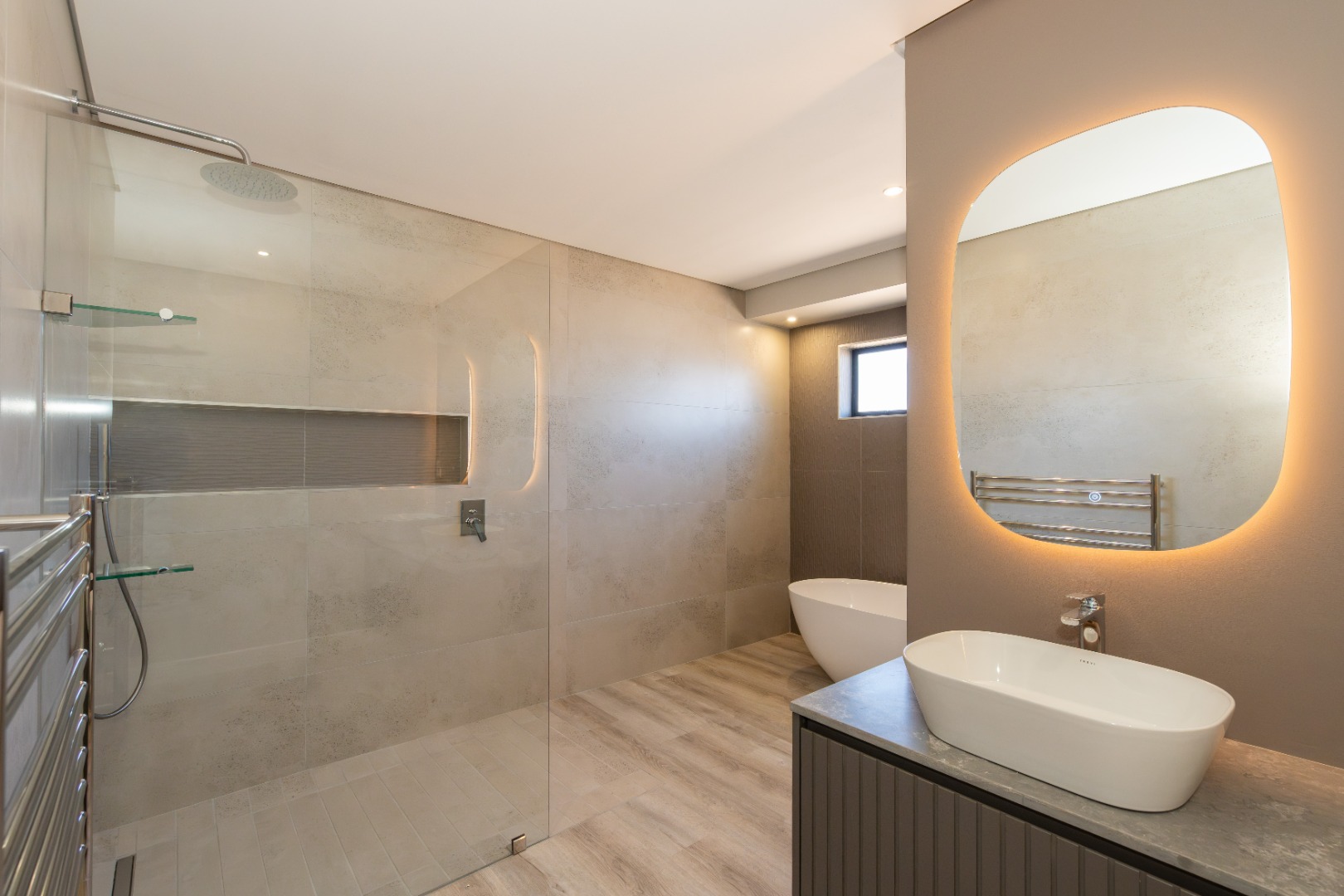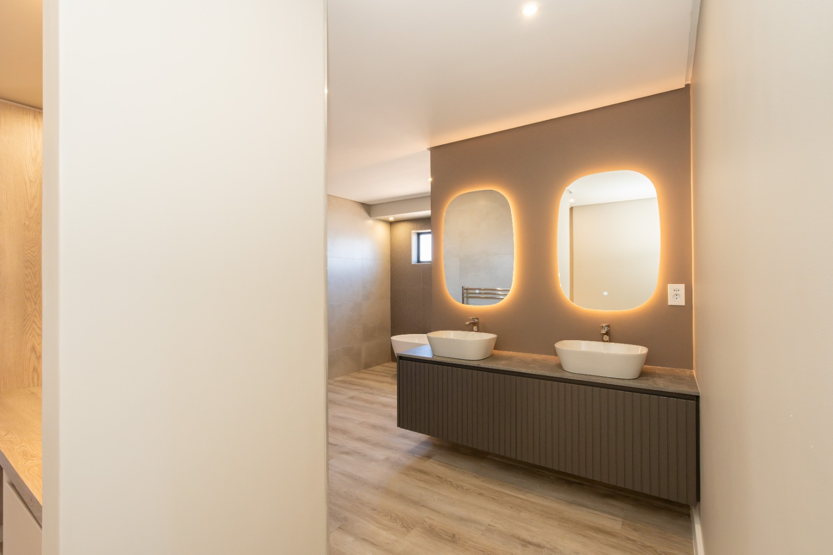Premium finishes throughout include soft-close cabinetry, refined lighting elements, shadow line ceilings and touch-lit mirrors in all bathrooms, adding to the home’s sleek, contemporary aesthetic. Additional features include three automated garages including space for your golf cart and direct access to the home, computerised irrigation system, solar geyser and alarm system for your ultimate lock up and go lifestyle.