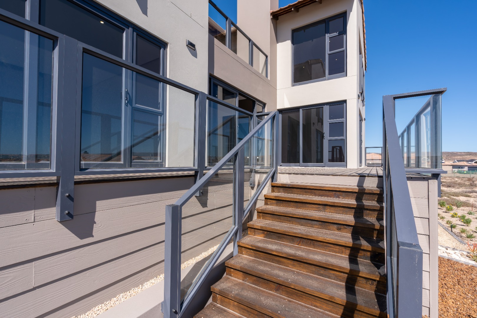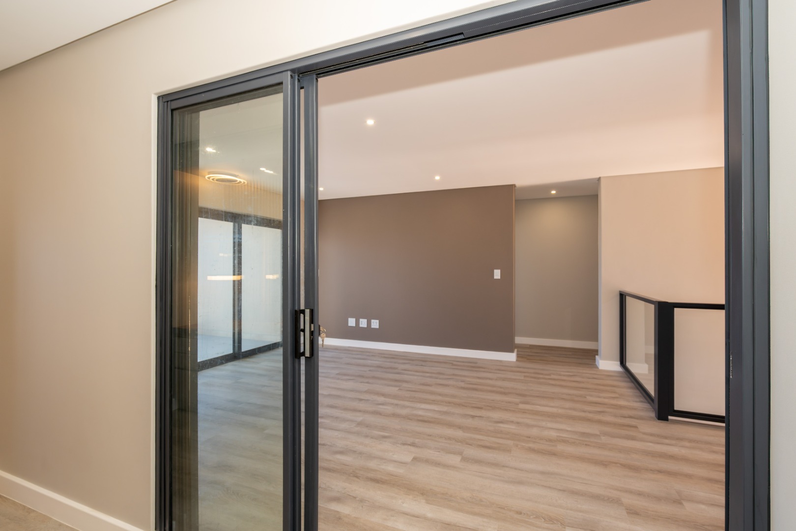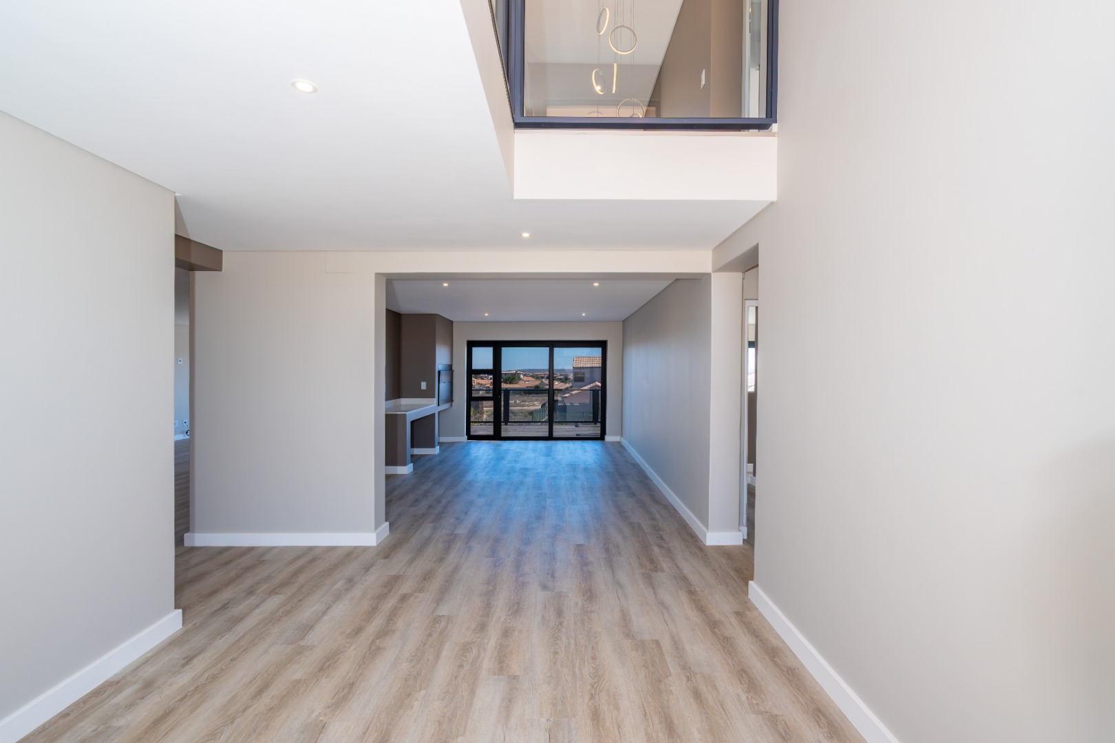 A striking double-volume entrance sets the tone, leading into expansive open-plan living areas where the lounge, dining space and indoor braai room flow seamlessly together, perfect for both relaxed family living and stylish entertaining. Stacking doors open out to the garden and outdoor entertainment areas, enhancing the home’s indoor-outdoor appeal via the staircase and wooden deck.
