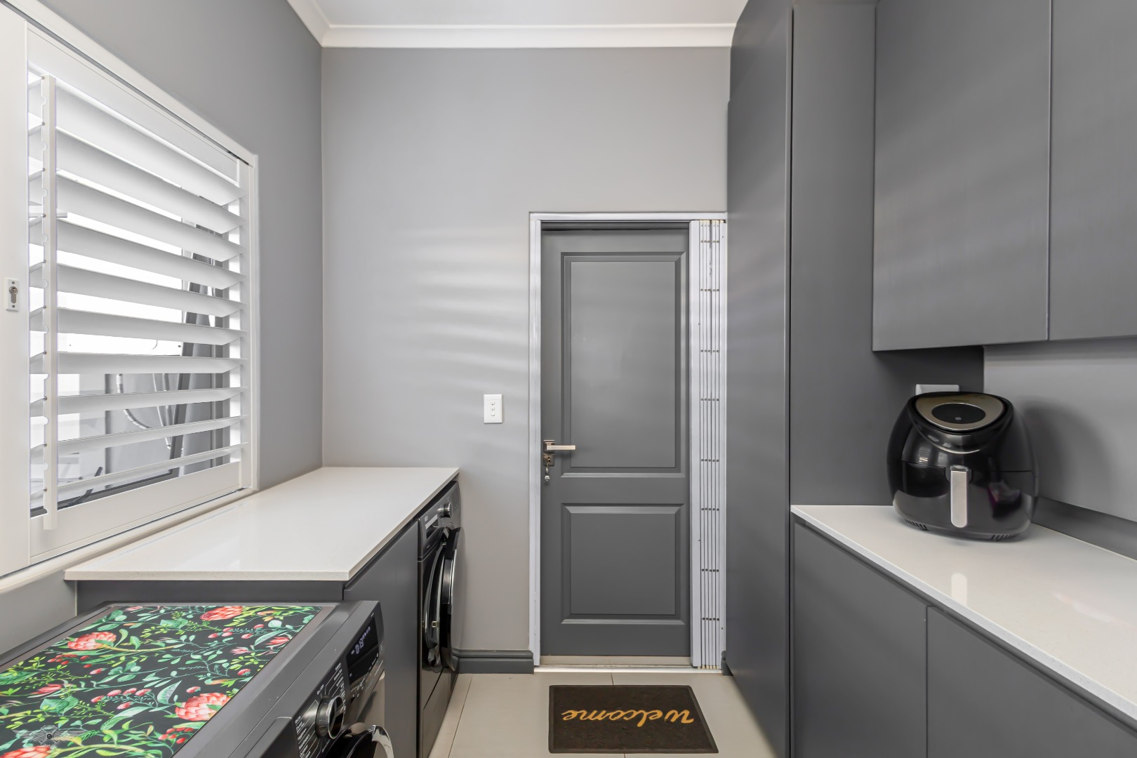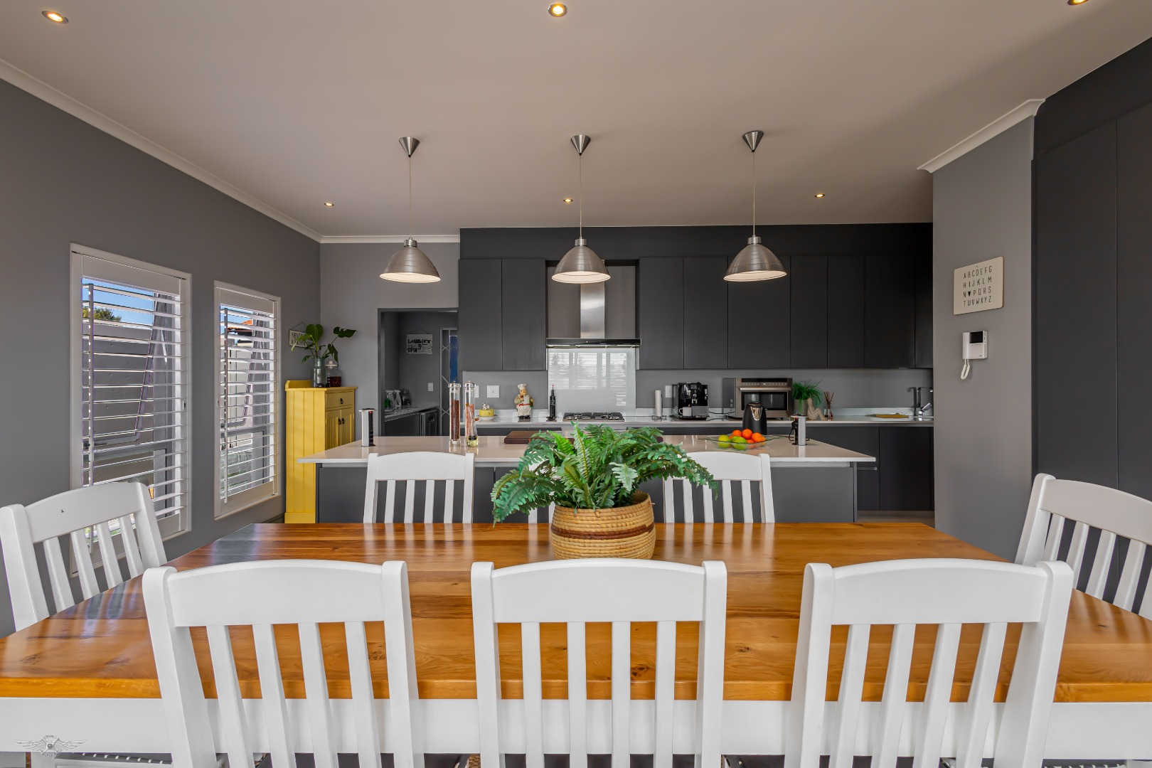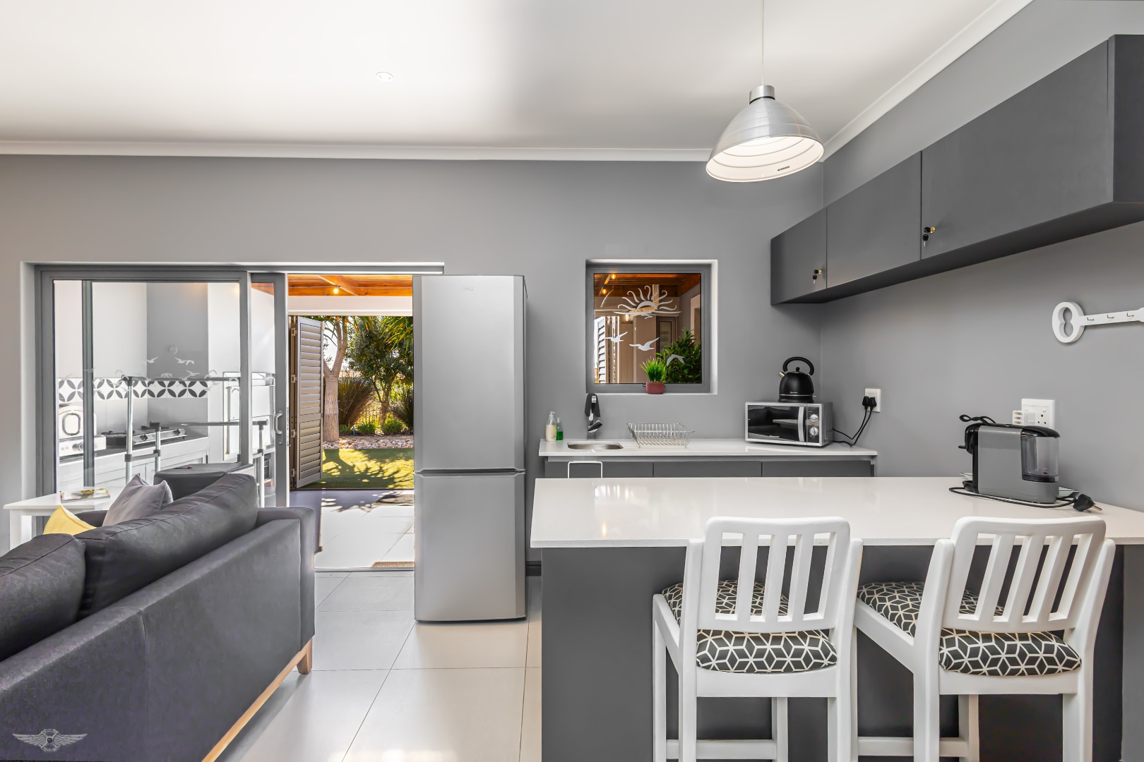 Modern comforts extend throughout the home, including a 5kW inverter, 11 solar panels, fan-forced geysers, alarm system, perimeter beams, high-quality security shutters, and a full water filtration system. Neutral grey tones create a serene canvas, ready for your personal style. This exceptional property can also be purchased fully furnished (negotiable), offering a turnkey lifestyle in one of Langebaan’s most desirable estates. A viewing is essential to truly appreciate its charm and functionality.