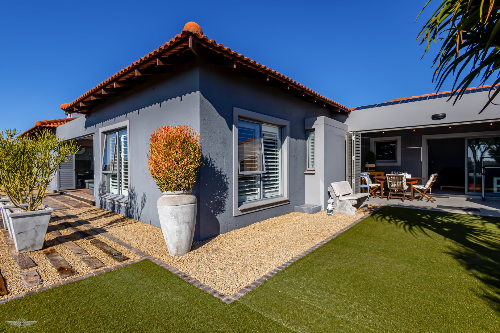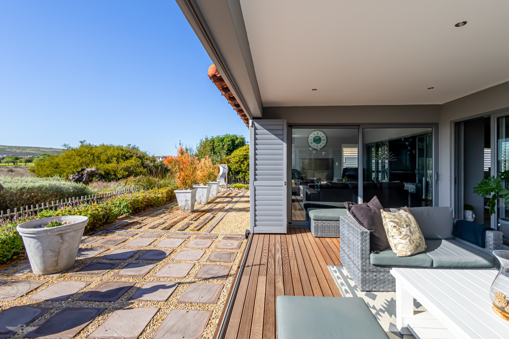 Step into contemporary elegance in this thoughtfully designed single-storey home, perfectly positioned in the prestigious Langebaan Country Estate. Originally a 4-bedroom residence, the layout has been tastefully adapted to include a separate 1-bedroom flatlet, which can easily be converted back to a full 4-bedroom home to suit your lifestyle.