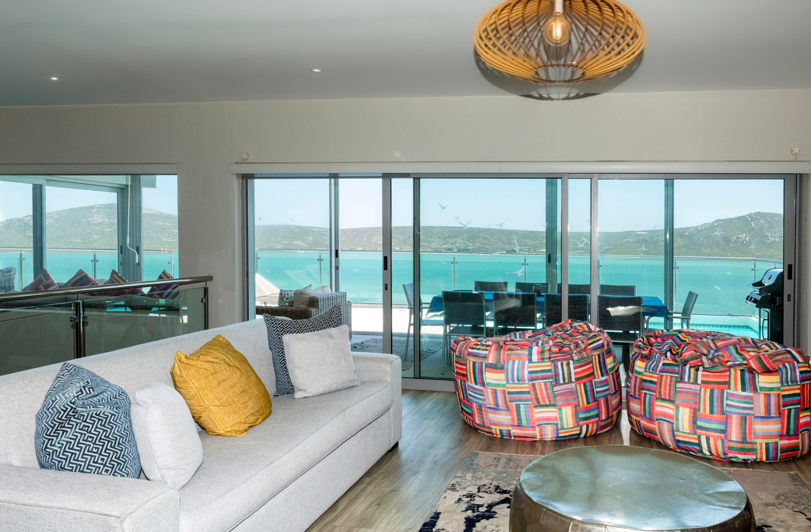 The View is an architecturally designed six-bedroom residence positioned to fully capture uninterrupted vistas of the Langebaan Lagoon. Purposefully designed to maximise its coastal setting, the home offers Lagoon and Ocean views from all five guest bedrooms, allowing occupants to wake to panoramic scenery and the natural ambience of the West Coast.