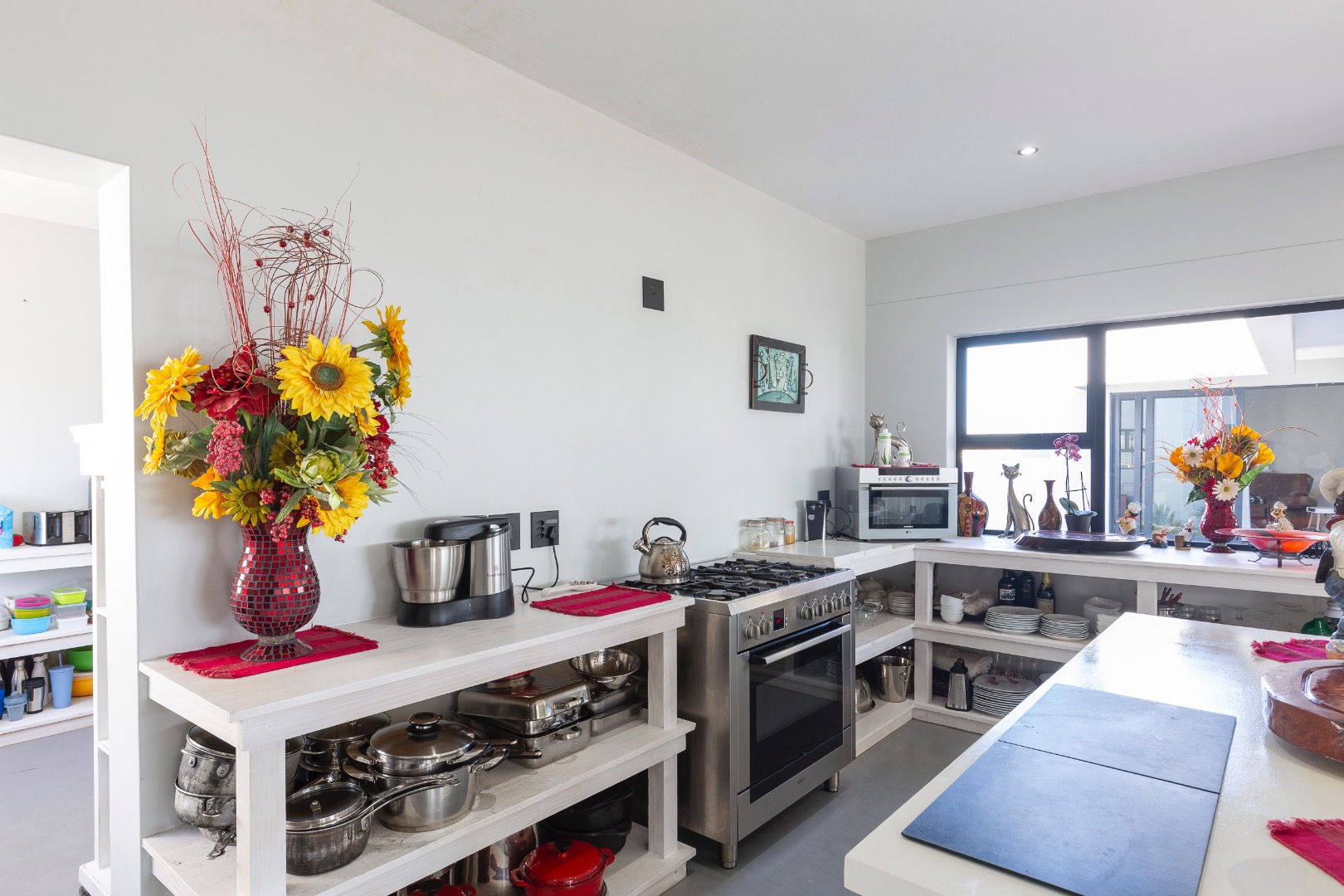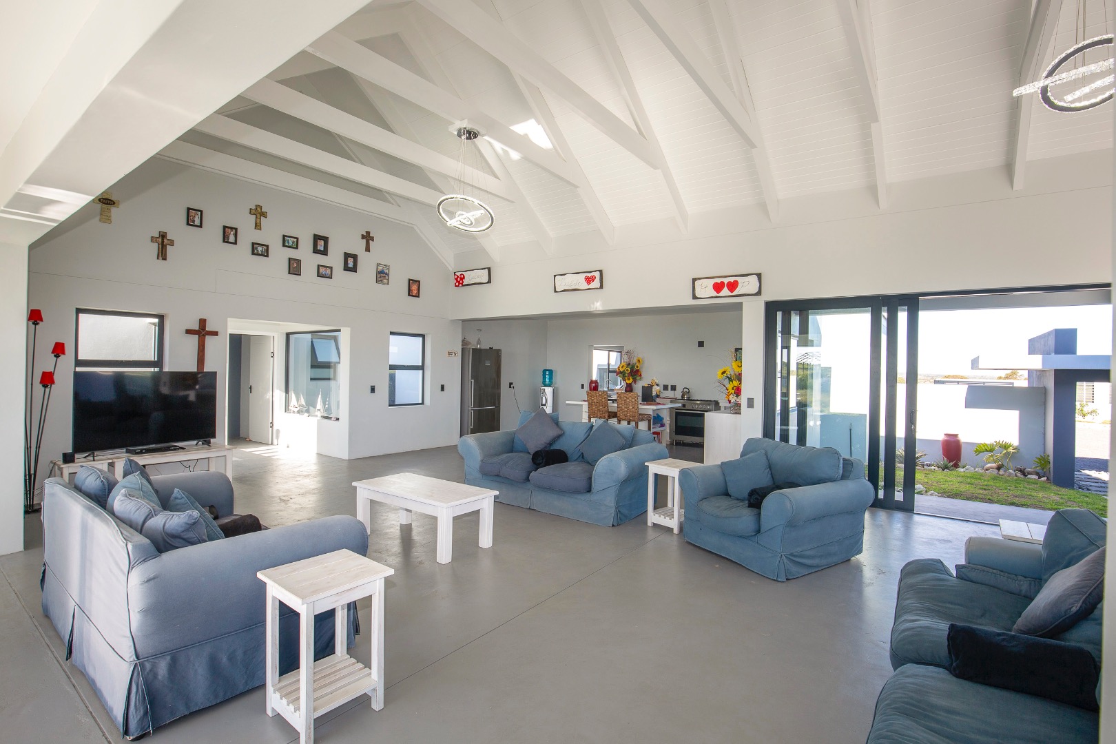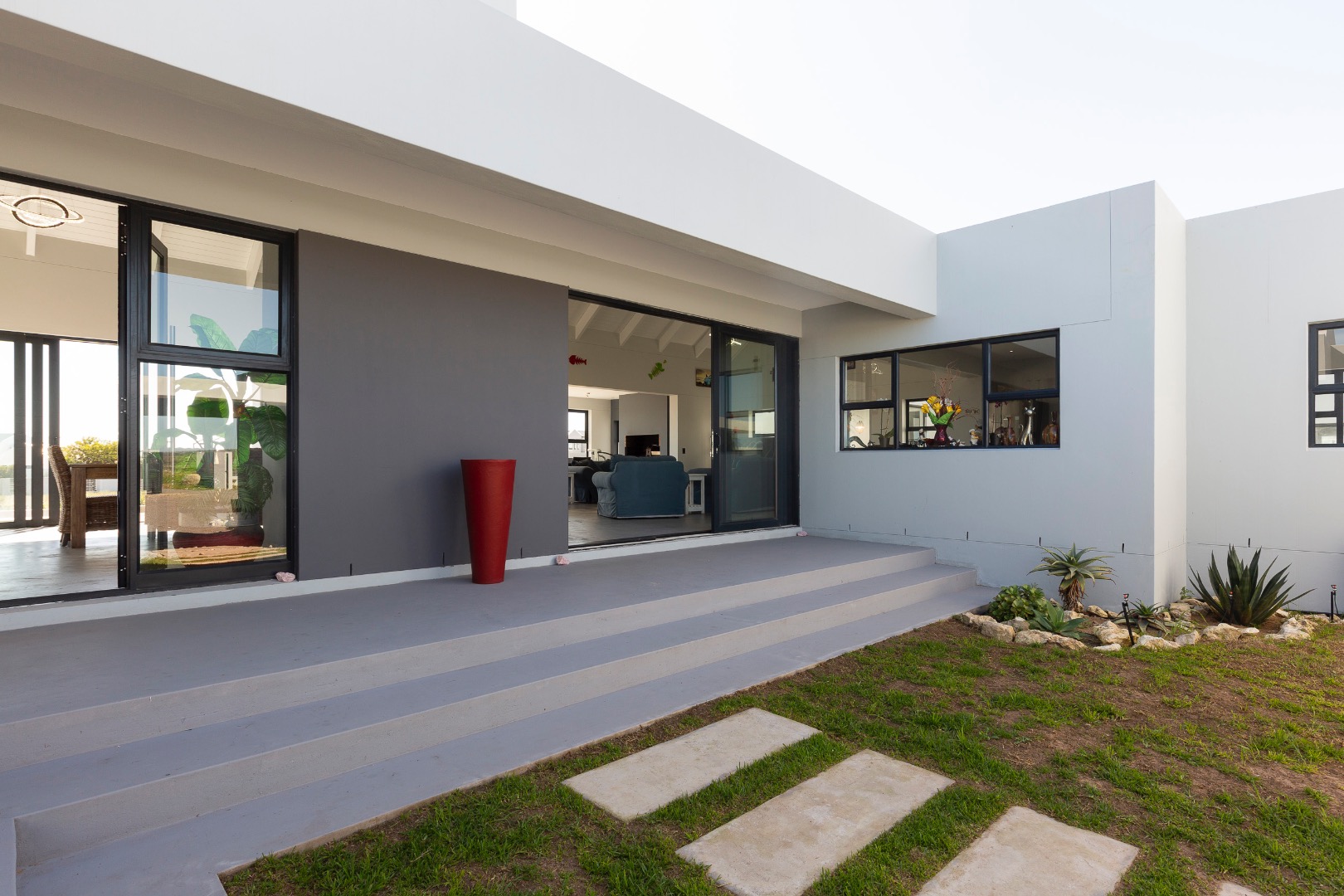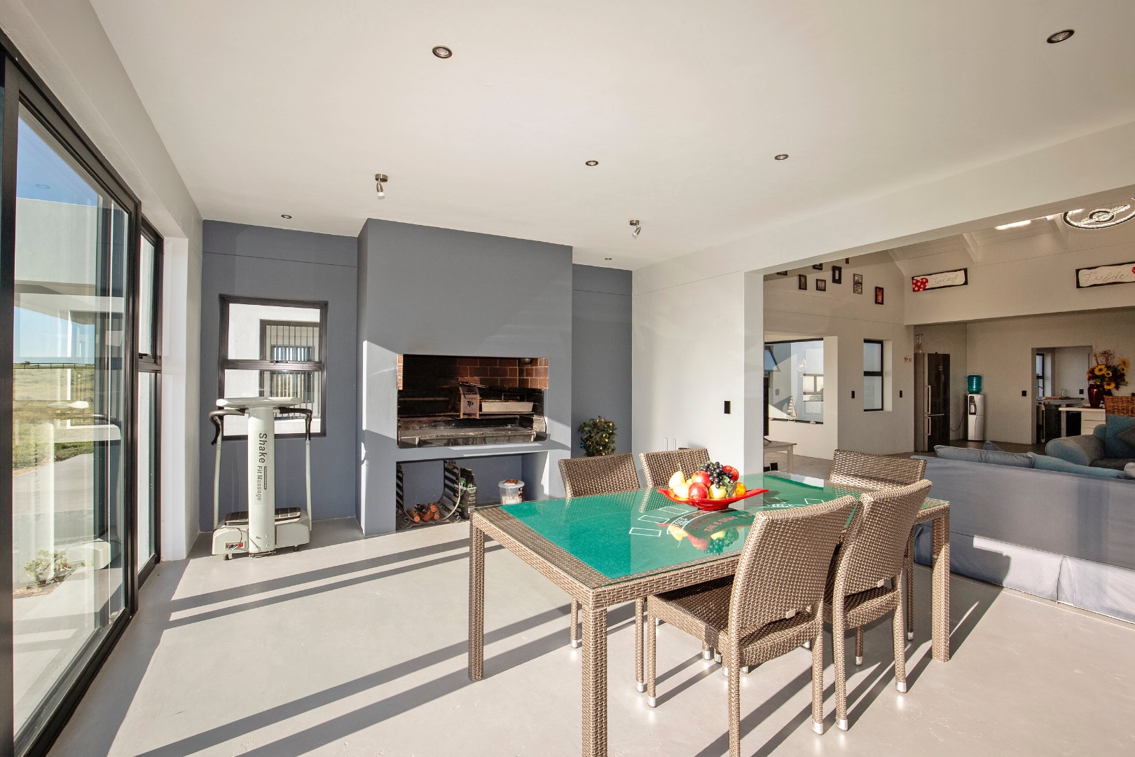 The home has been thoughtfully designed for seamless living and entertaining, featuring three spacious en-suite bedrooms, two opening onto a private patio with breathtaking sea views. Expansive open-plan living spaces include a lounge, dining room and TV room that flow into an indoor braai and entertainment area — all perfectly oriented to enjoy the coastal panorama.