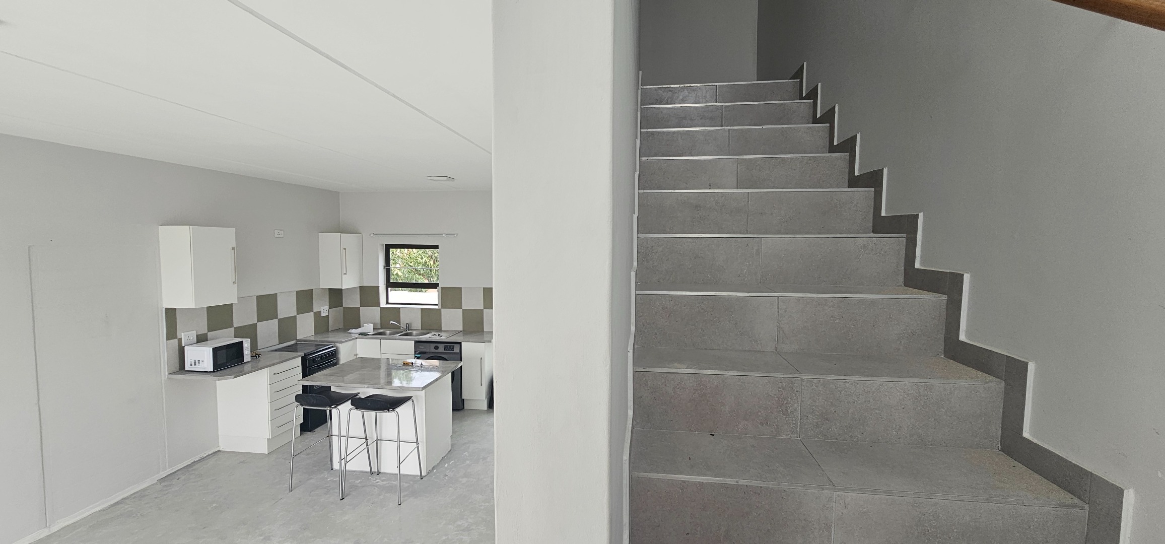 Brand new modern duplex unit to rent in Langebaan - the owner is still busy enclosing the patio for tenant privacy.