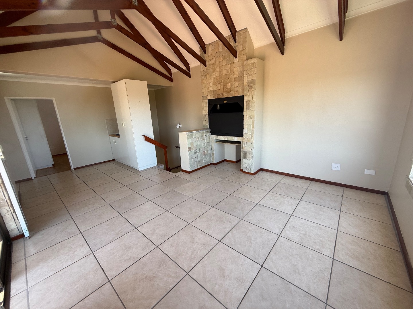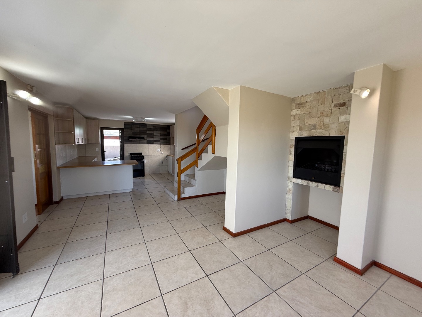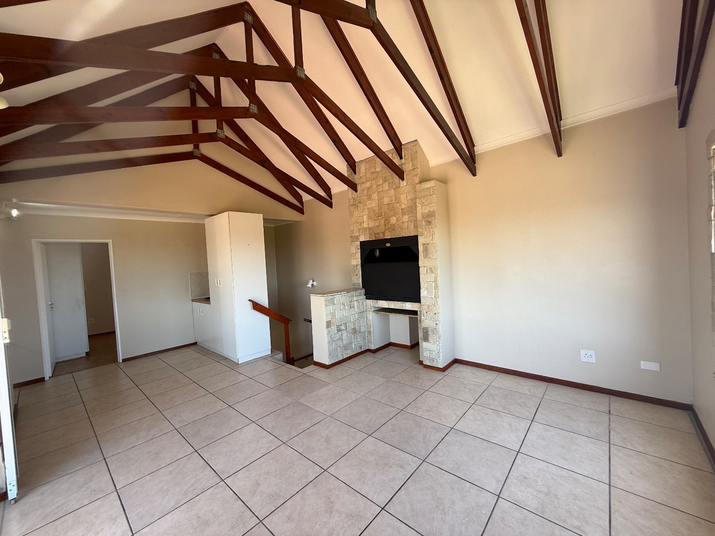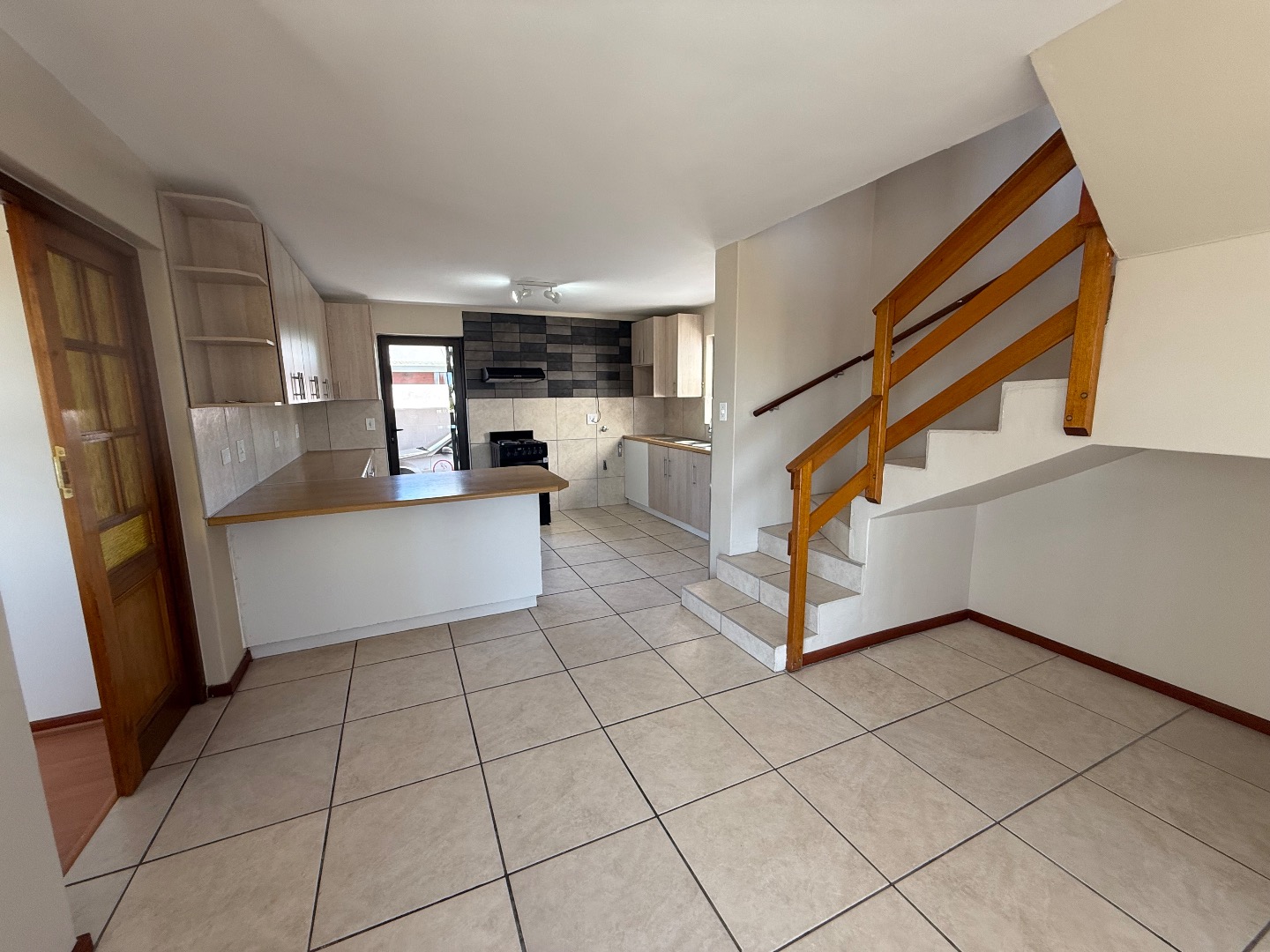 Upstairs, you'll find three cozy bedrooms, offering plenty of space for family or guests. There are two bathrooms, including a convenient en-suite, ensuring everyone has their own private space. The home also boasts a built-in braai, perfect for those classic South African cookouts.