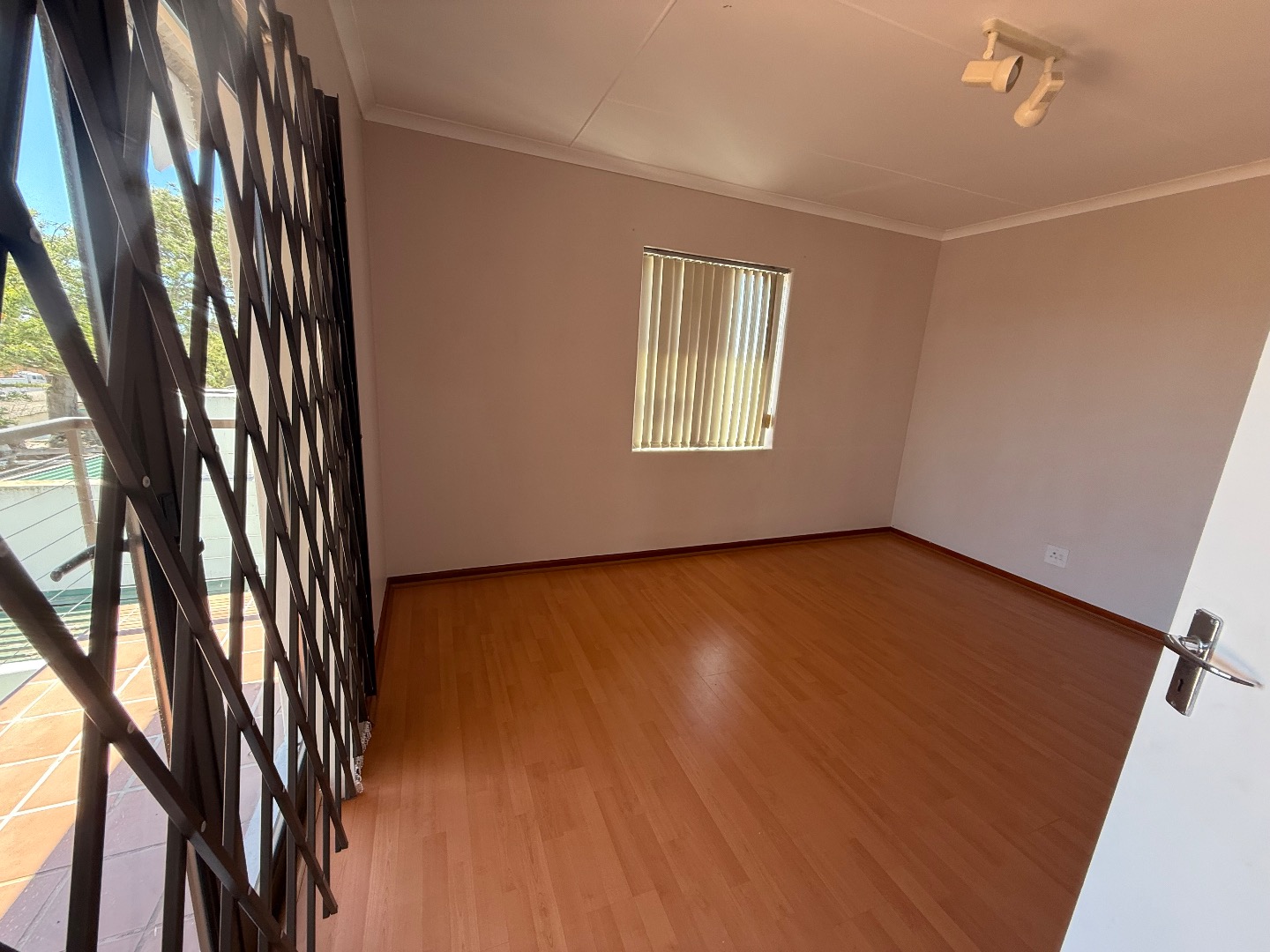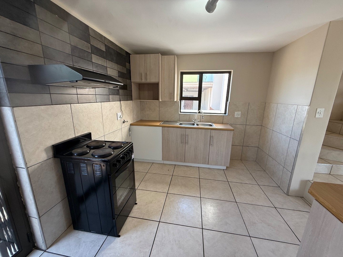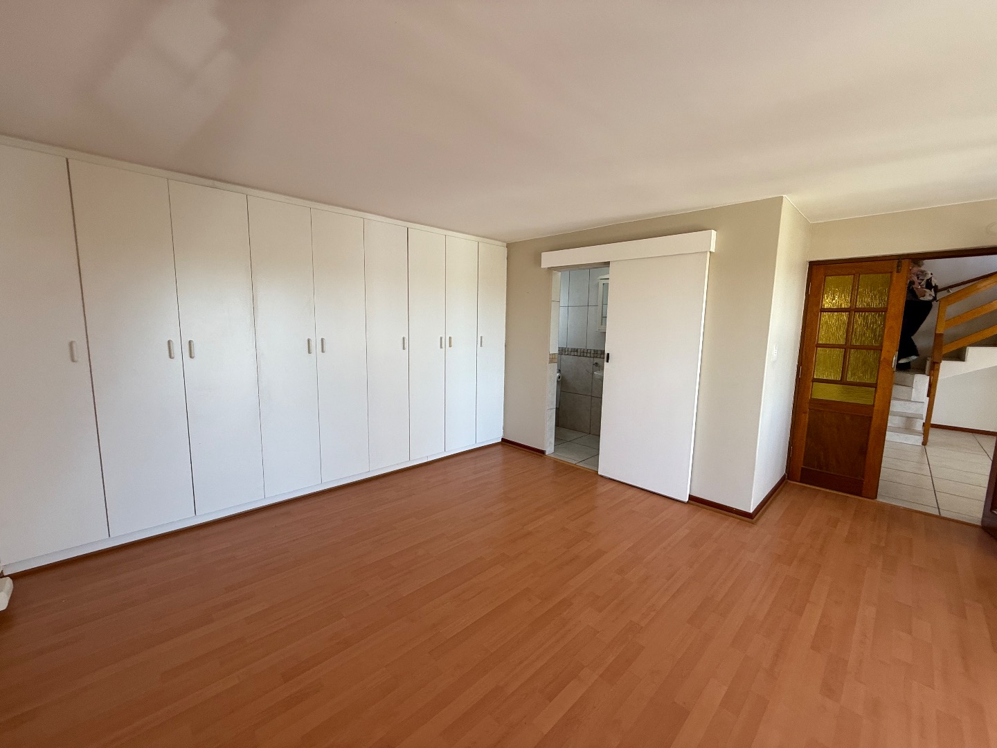 Upstairs, you'll find three cozy bedrooms, offering plenty of space for family or guests. There are two bathrooms, including a convenient en-suite, ensuring everyone has their own private space. The home also boasts a built-in braai, perfect for those classic South African cookouts.