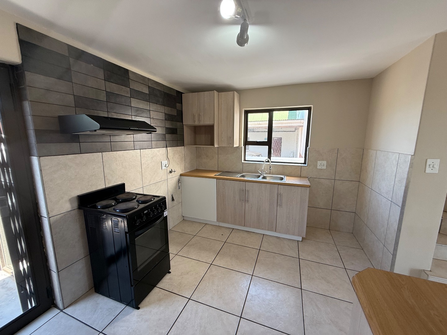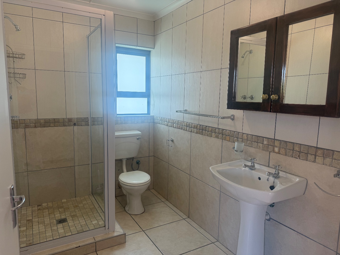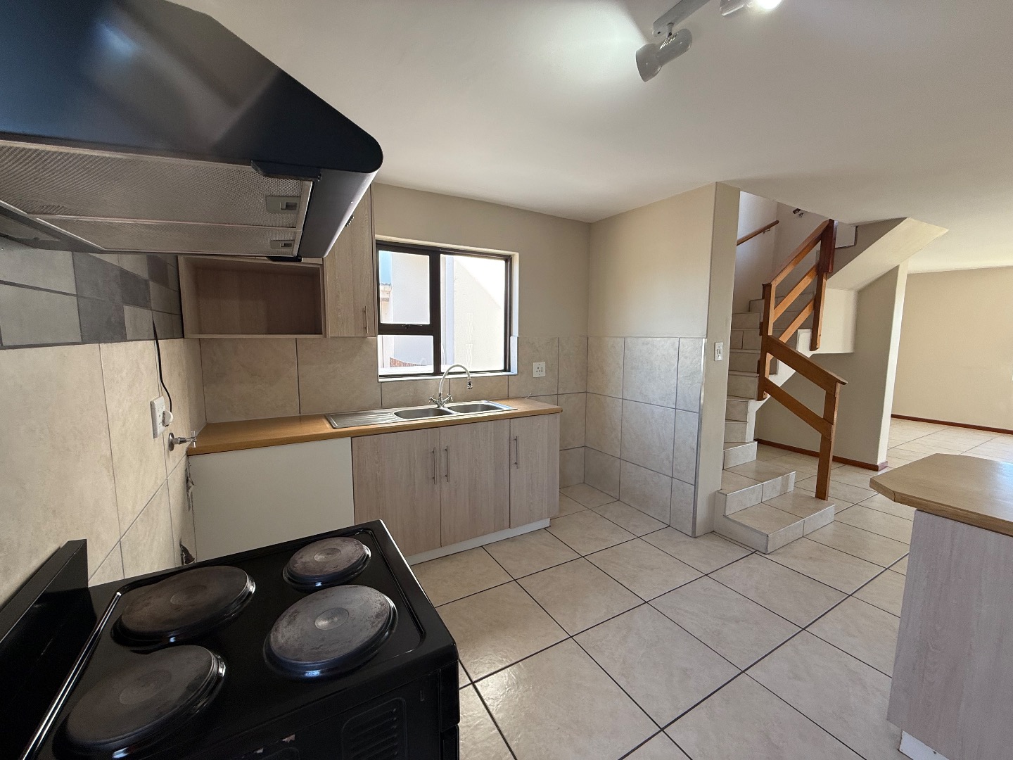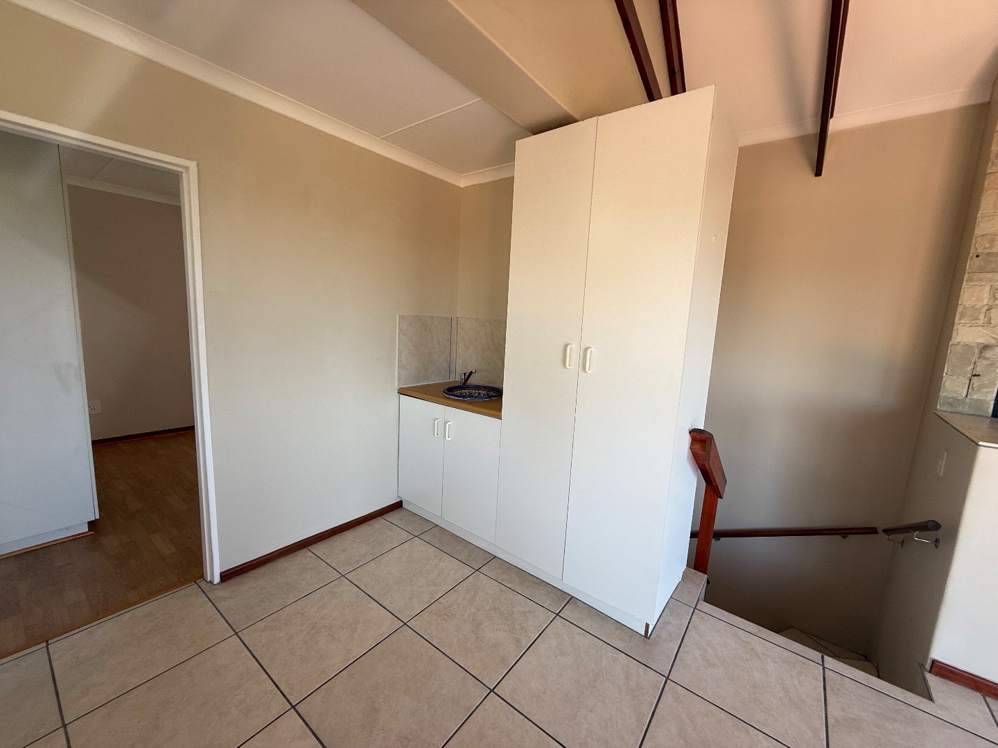 Upstairs, you'll find three cozy bedrooms, offering plenty of space for family or guests. There are two bathrooms, including a convenient en-suite, ensuring everyone has their own private space. The home also boasts a built-in braai, perfect for those classic South African cookouts.