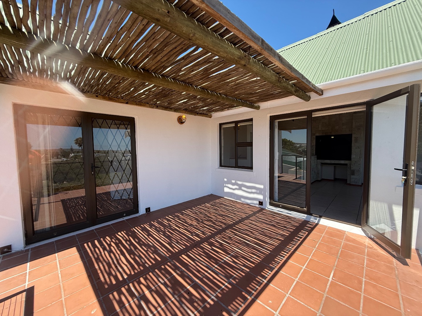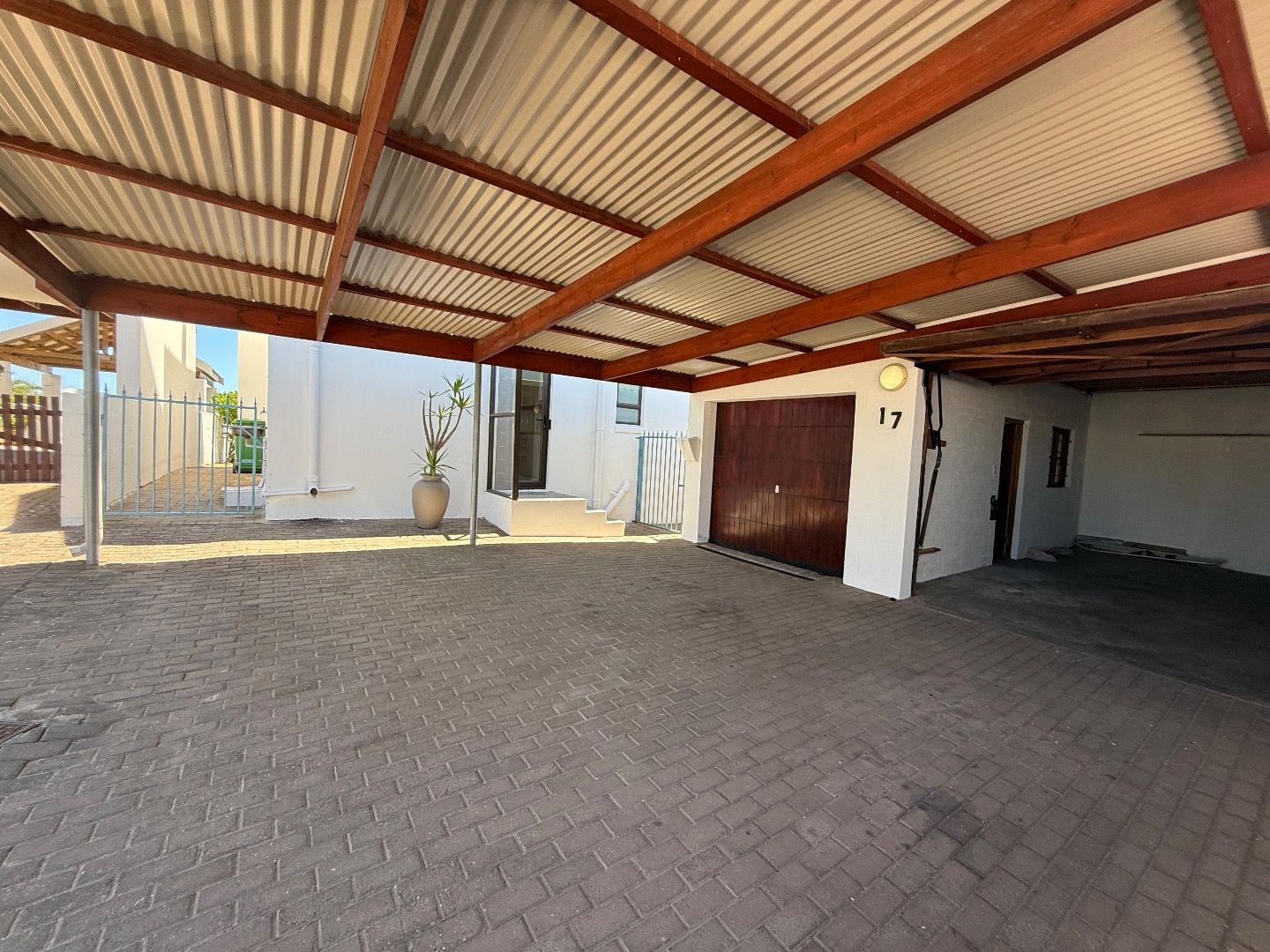 Hey there! Take a peek at this lovely two-story home in Galjoenduin Langebaan, perfect for a relaxed coastal lifestyle or a fantastic holiday getaway. With its bright white exterior, green roof, and a cool balcony with a pergola, it's got great kerb appeal. You'll love spending time outdoors on the ground-floor patio, overlooking a neat, easy-to-maintain lawn – ideal for soaking up the South African sunshine. Plus, it's practical with a rainwater harvesting system and garden irrigation.
