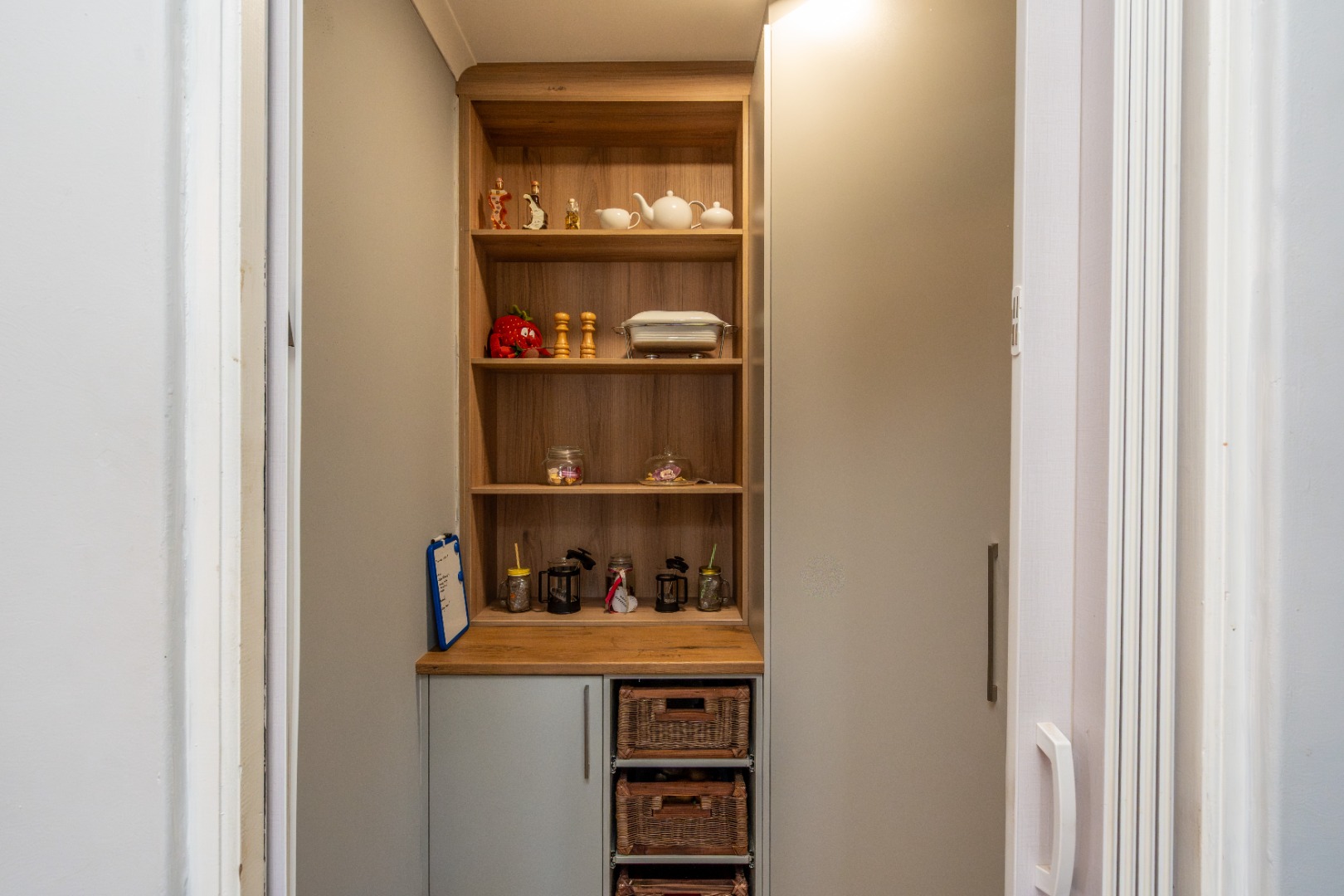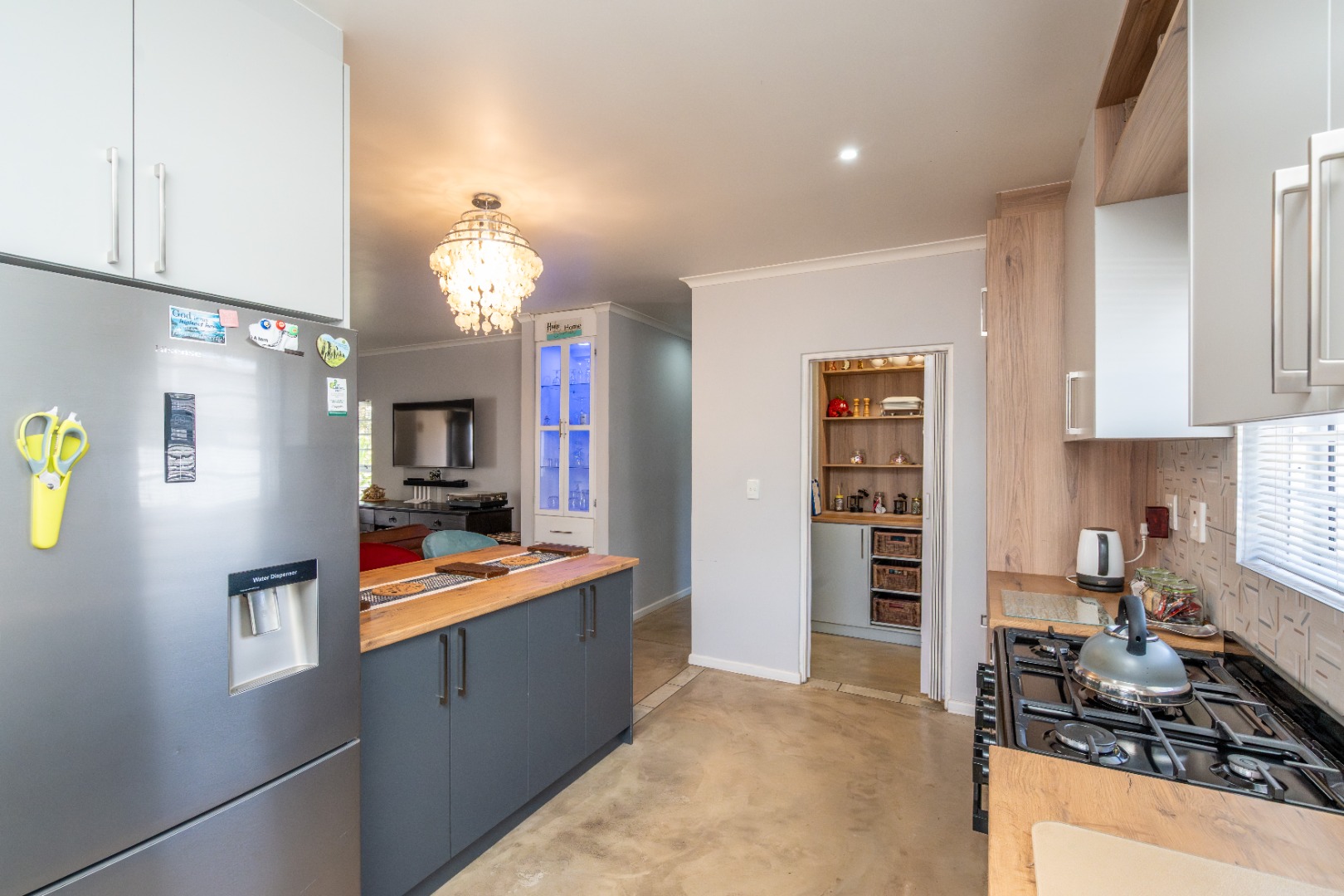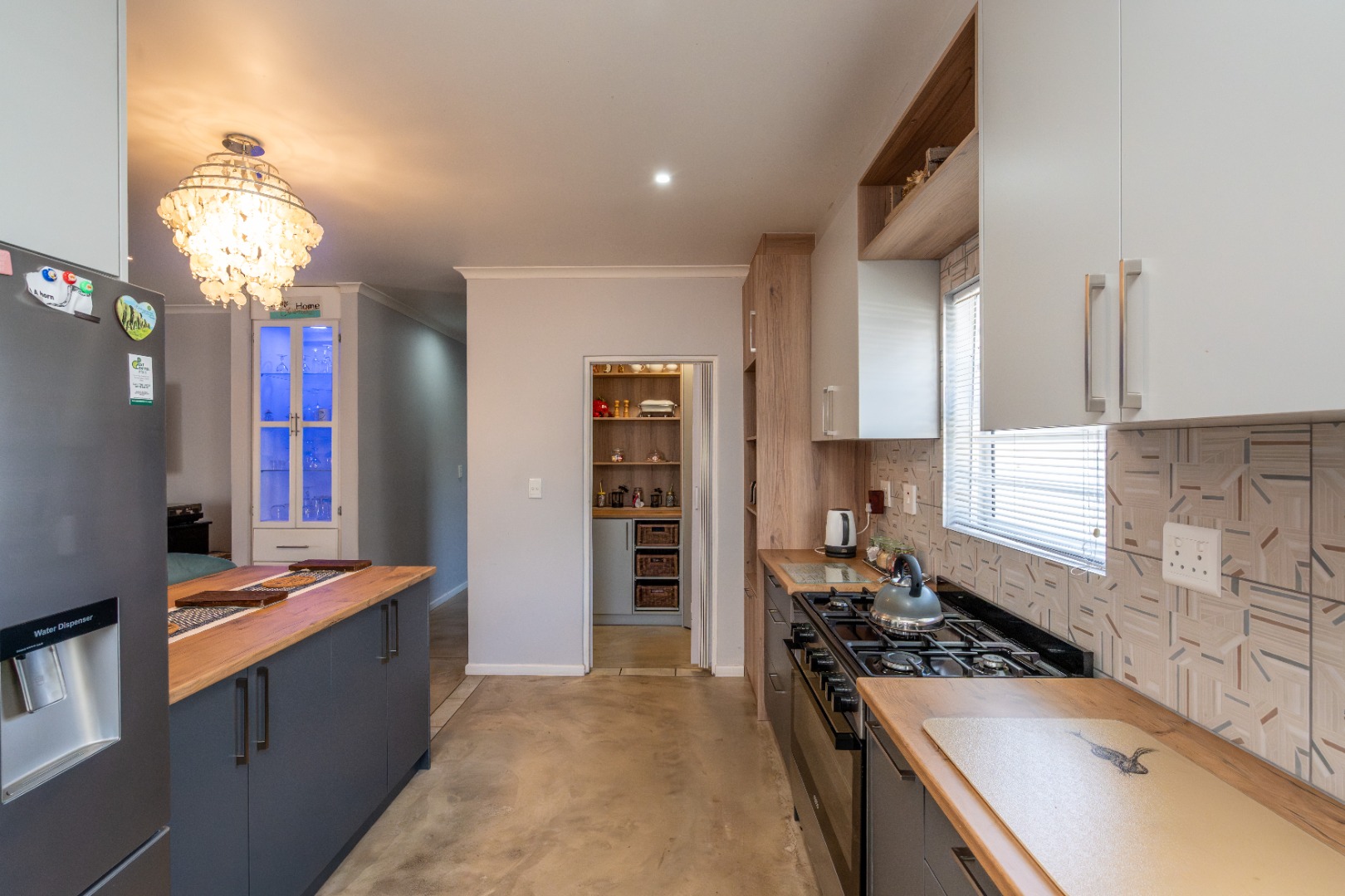 Well-Equipped Kitchen: Designed for functionality, the kitchen boasts a walk-in pantry, a scullery, and a high-quality Defy stove with a gas hob and electric oven. A convenient counter space is perfect for casual family meals.