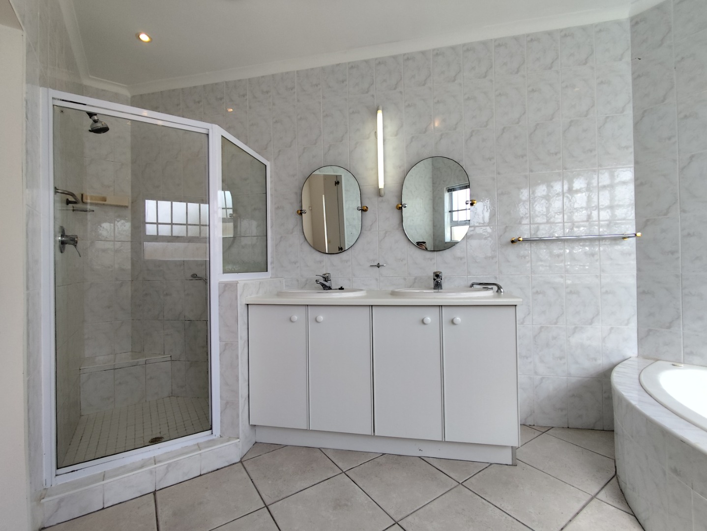 This established home welcomes you with spacious open-plan living areas where the dining and lounge flow seamlessly toward sliding doors that frame the lagoon and dunes beyond. The views are simply breathtaking, with the wild Atlantic Ocean shimmering in the distance. The kitchen is designed for both practicality and connection, featuring a large breakfast counter, separate scullery and laundry area. A guest toilet adds convenience for visitors, while a generous braai room with sliding doors opens onto a sheltered courtyard, perfect for year round entertaining.