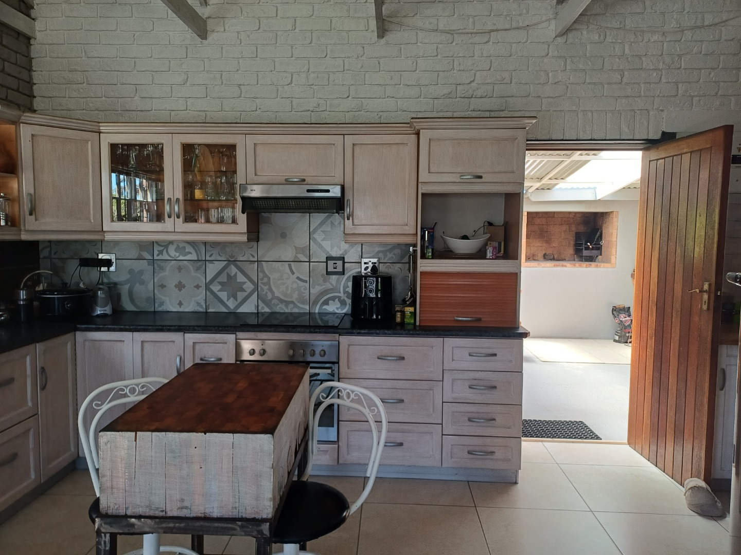 Set in a lovely landscaped garden bordering on a greenbelt which creates a sense of space, this intriguing property is one of its kind and one can see and feel the eclectic taste of its owner throughout. The open plan lounge, dining room and kitchen area is also double volume with exposed beams and lends the impression of space. The main house has 3 spacious bedrooms, the main has a beautiful en suite, and a family bathroom. The kibble brick-walls are part of the charm of this home and the wood finish of the flooring also creates a feeling of warmth.