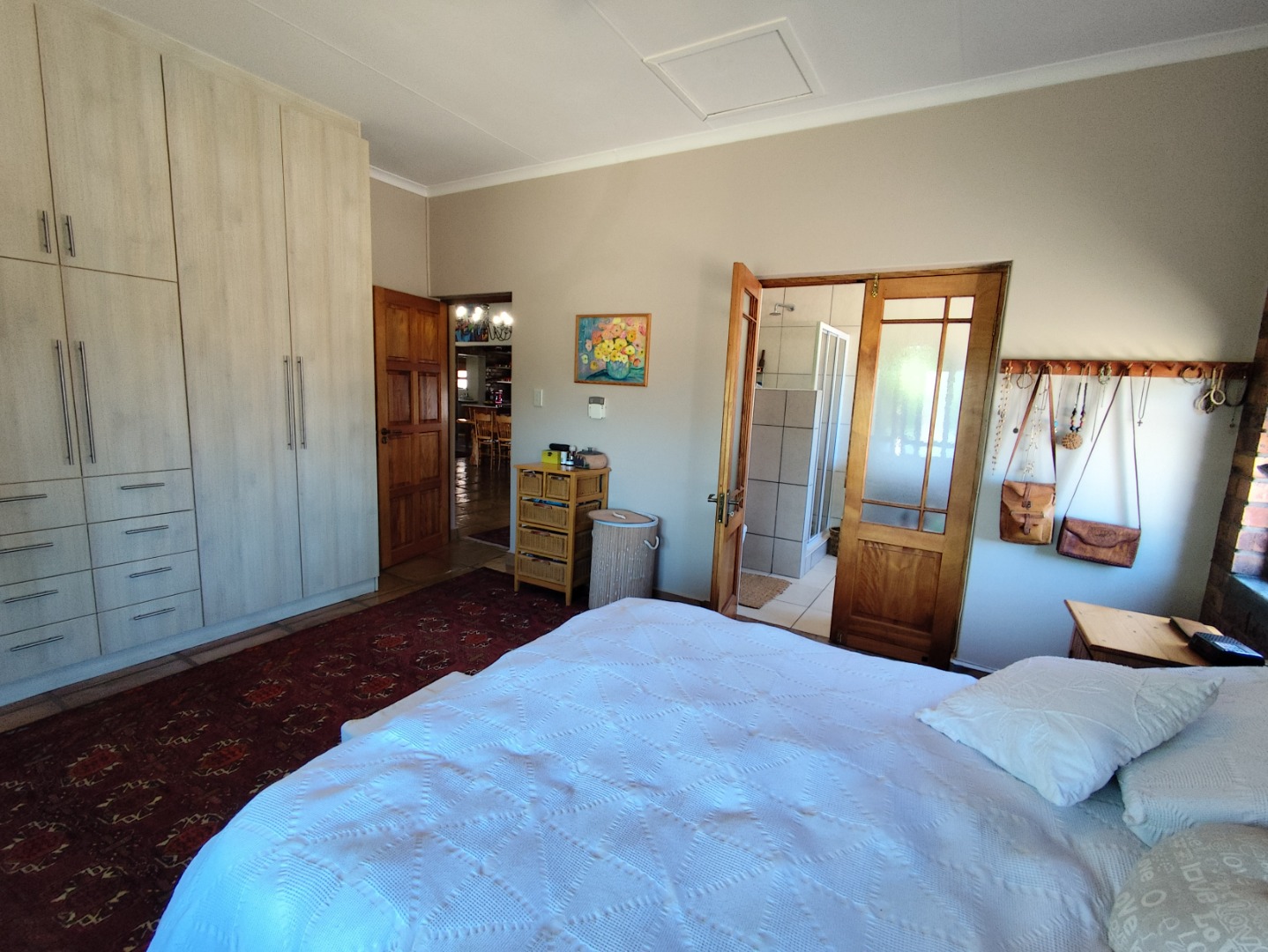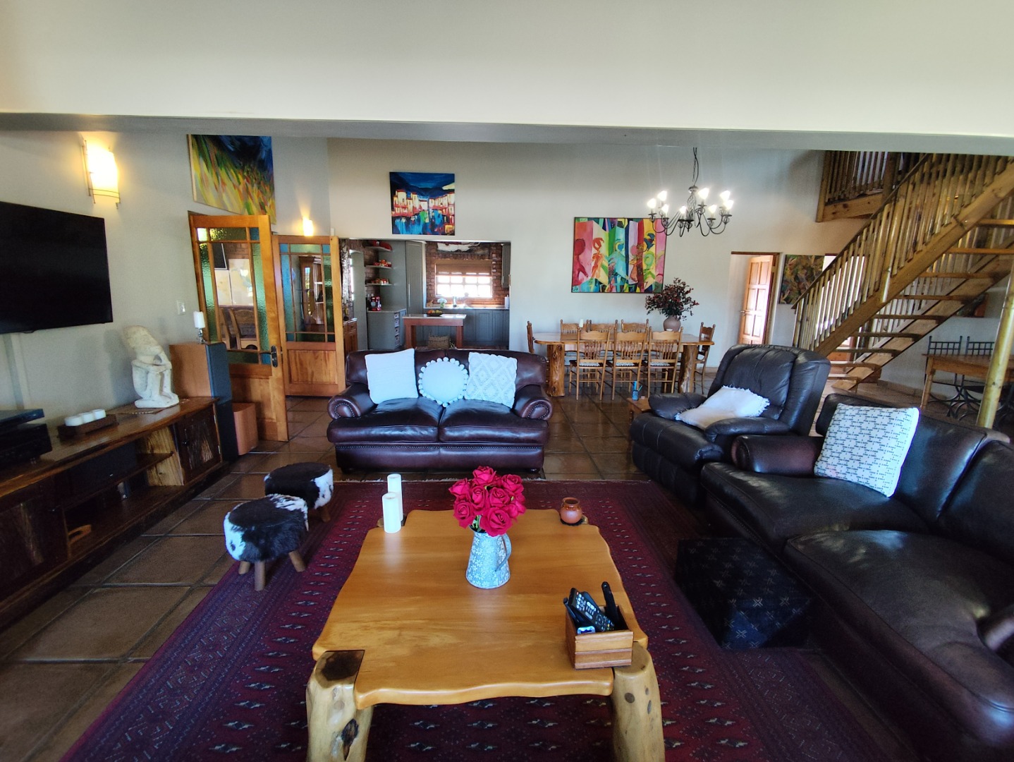 A standout feature is the triple garage, fully tiled with built-in cupboards, plus a separate workshop with a mechanical pit, ideal for hobbyists or hands-on professionals. The property is equipped with an impressive solar setup designed for efficient, sustainable living: 18 solar panels providing 4.5kW, a 10.24kW battery for reliable backup, a solar geyser with three panels and an additional 10L electric geyser for the kitchen. Combined with its extensive water system, including multiple JoJo tanks, filtration and UV purification, this home offers true off-grid-ready capability.