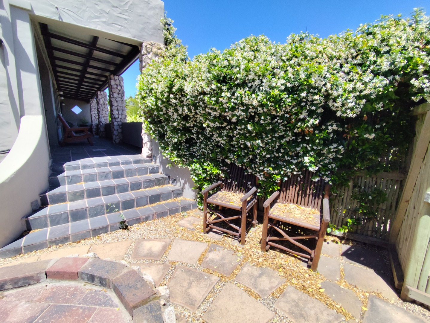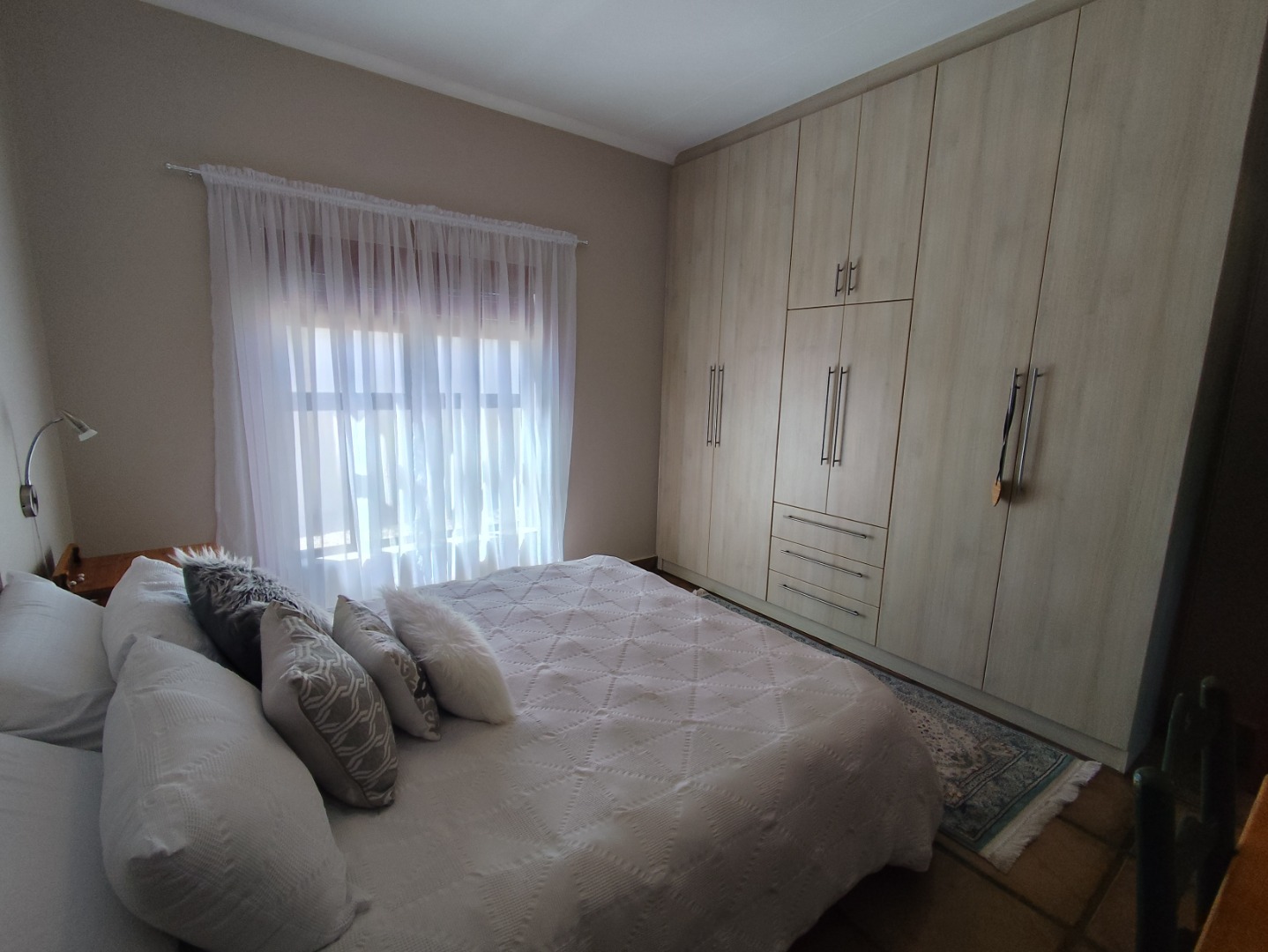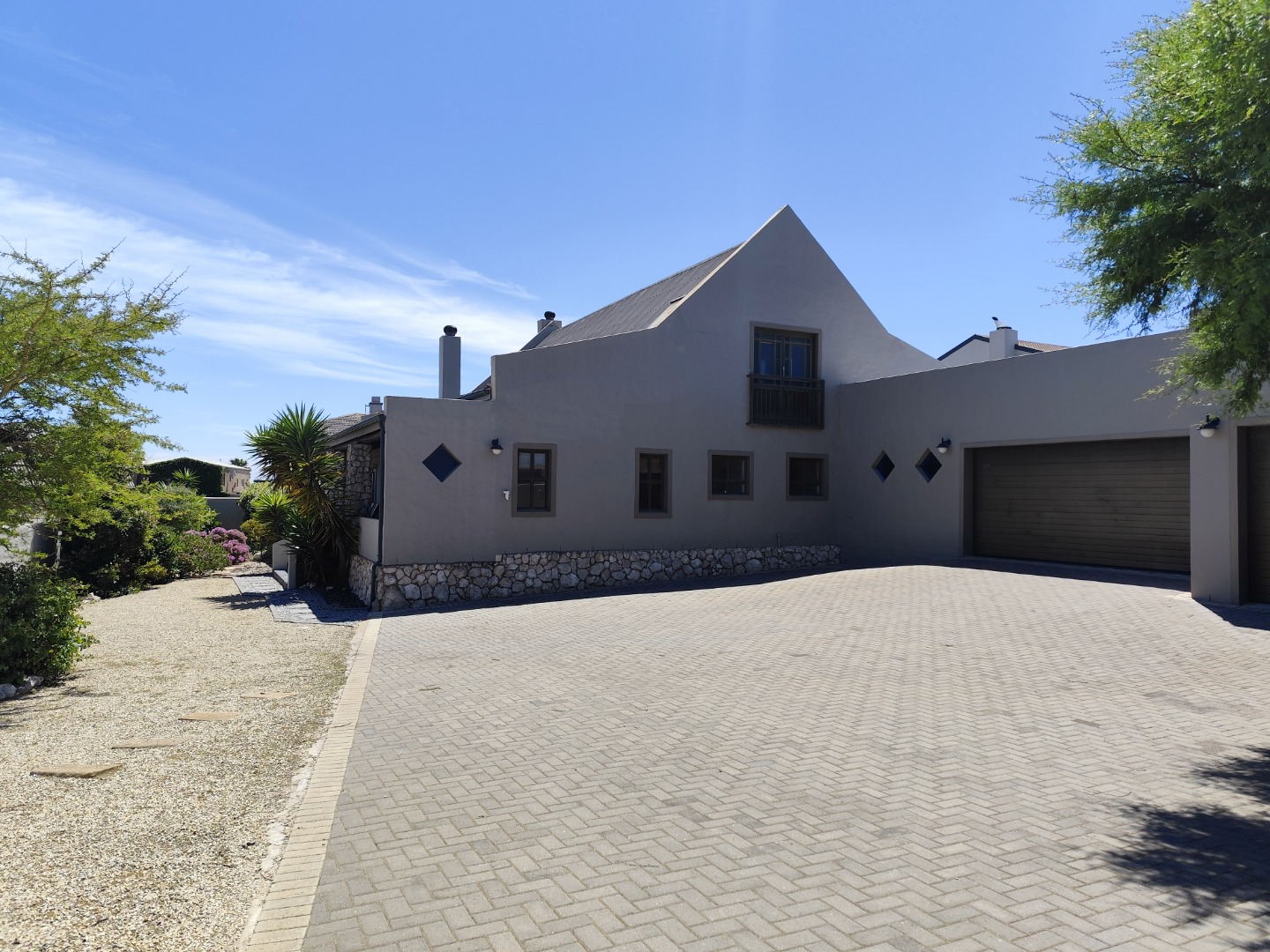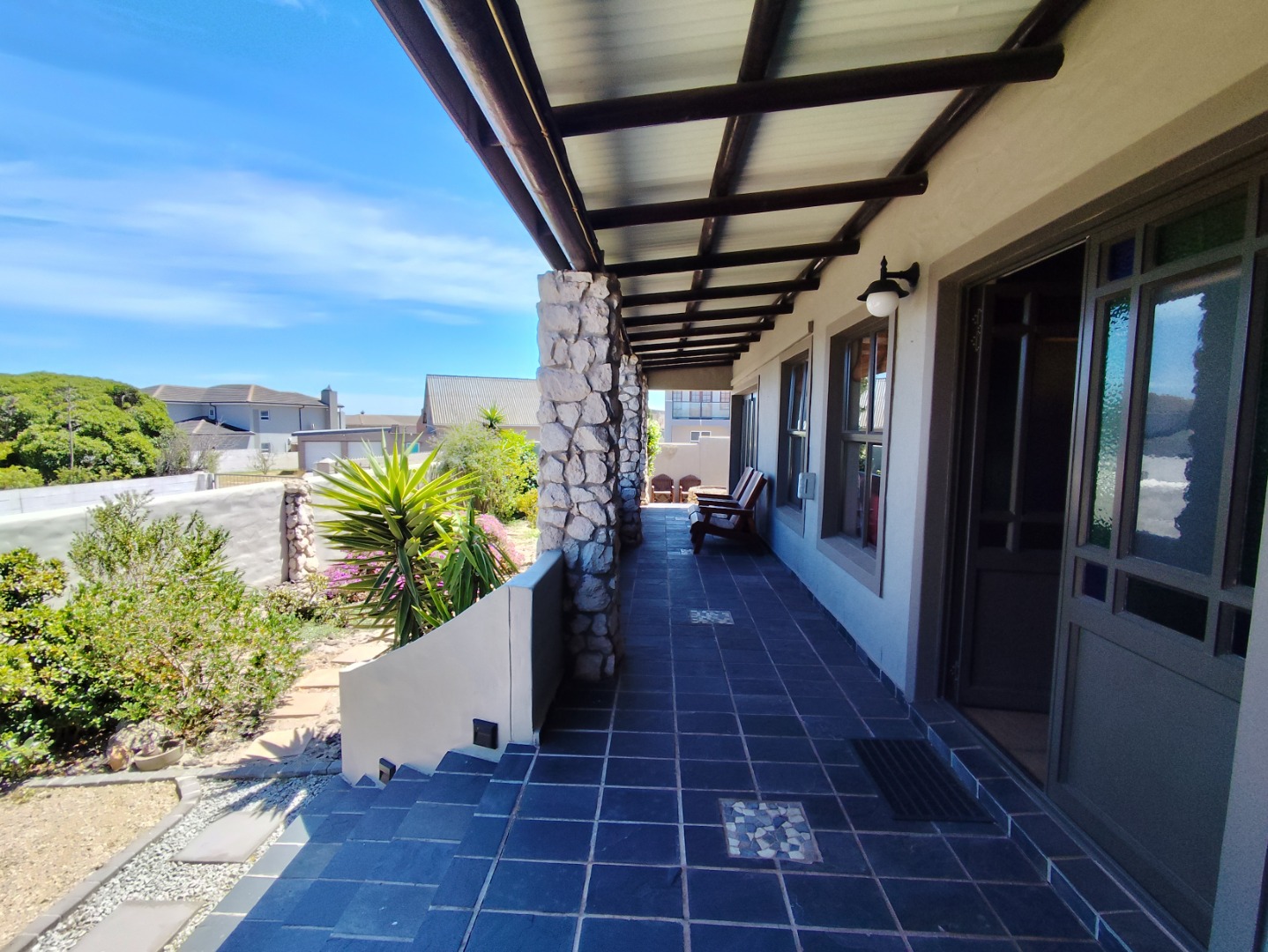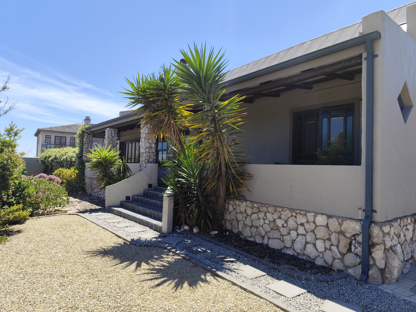 Security includes an alarm system, outdoor beams and riveted windows that retain the clean aesthetic without burglar bars. The low-maintenance garden is established with beautiful trees and paved areas, making outdoor living effortless. Move-in ready and thoughtfully designed, this home offers comfort, character and peace in a sought-after family area of Langebaan.