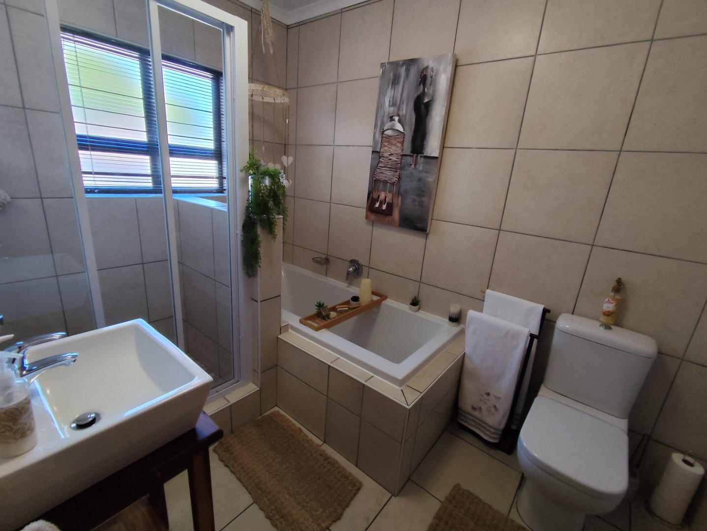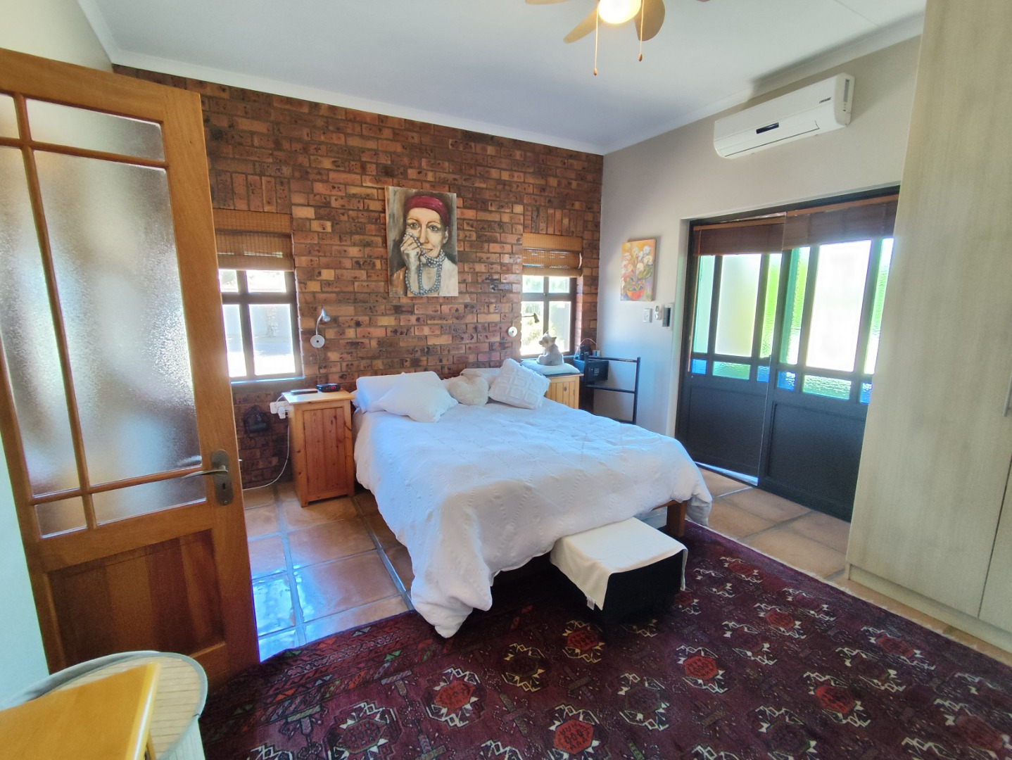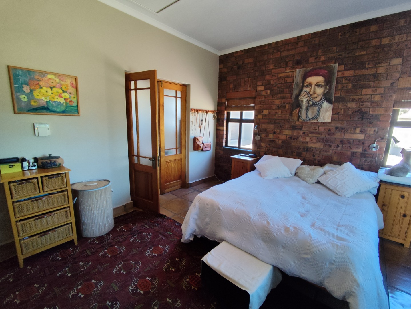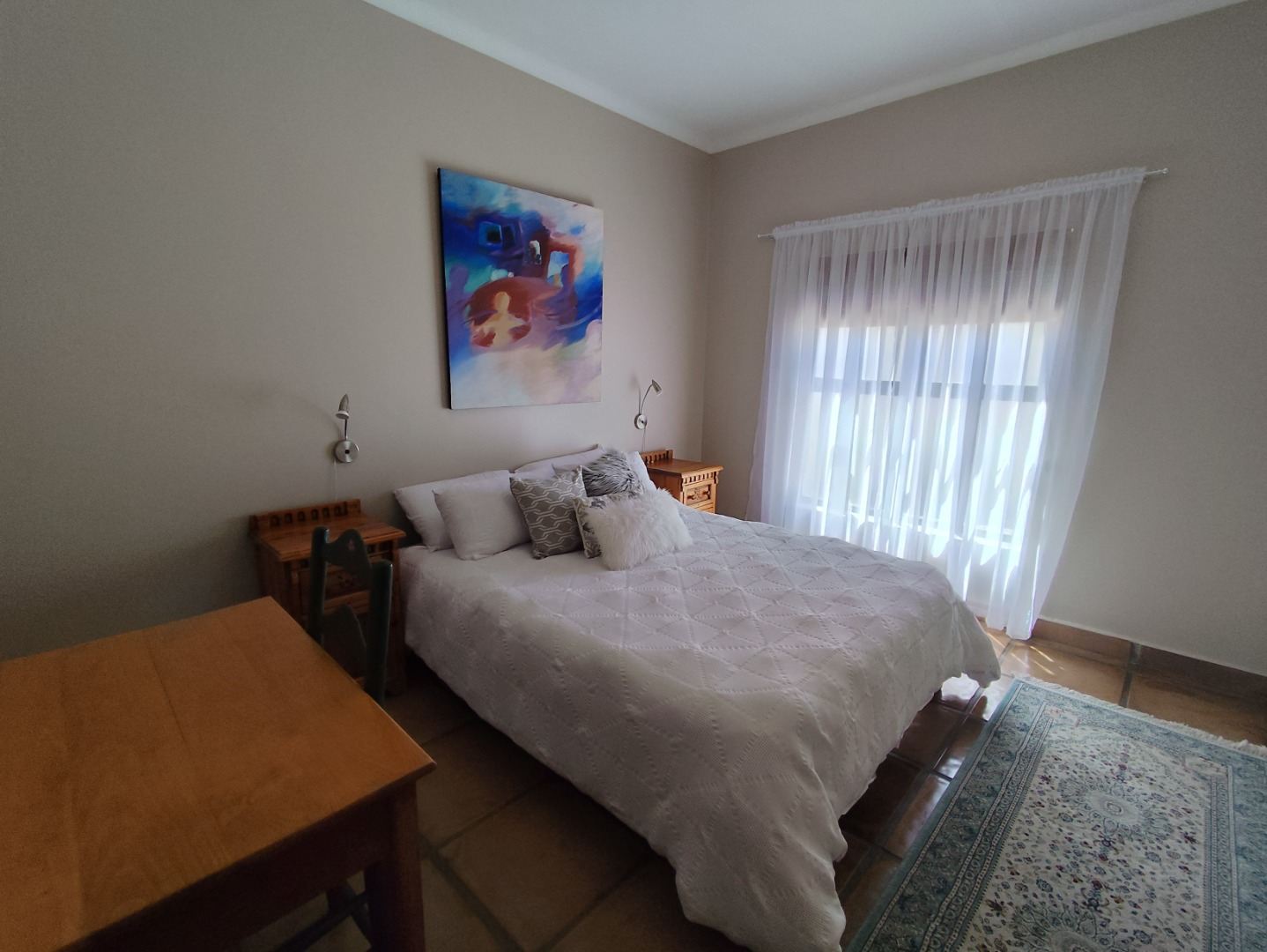 Security includes an alarm system, outdoor beams and riveted windows that retain the clean aesthetic without burglar bars. The low-maintenance garden is established with beautiful trees and paved areas, making outdoor living effortless. Move-in ready and thoughtfully designed, this home offers comfort, character and peace in a sought-after family area of Langebaan.