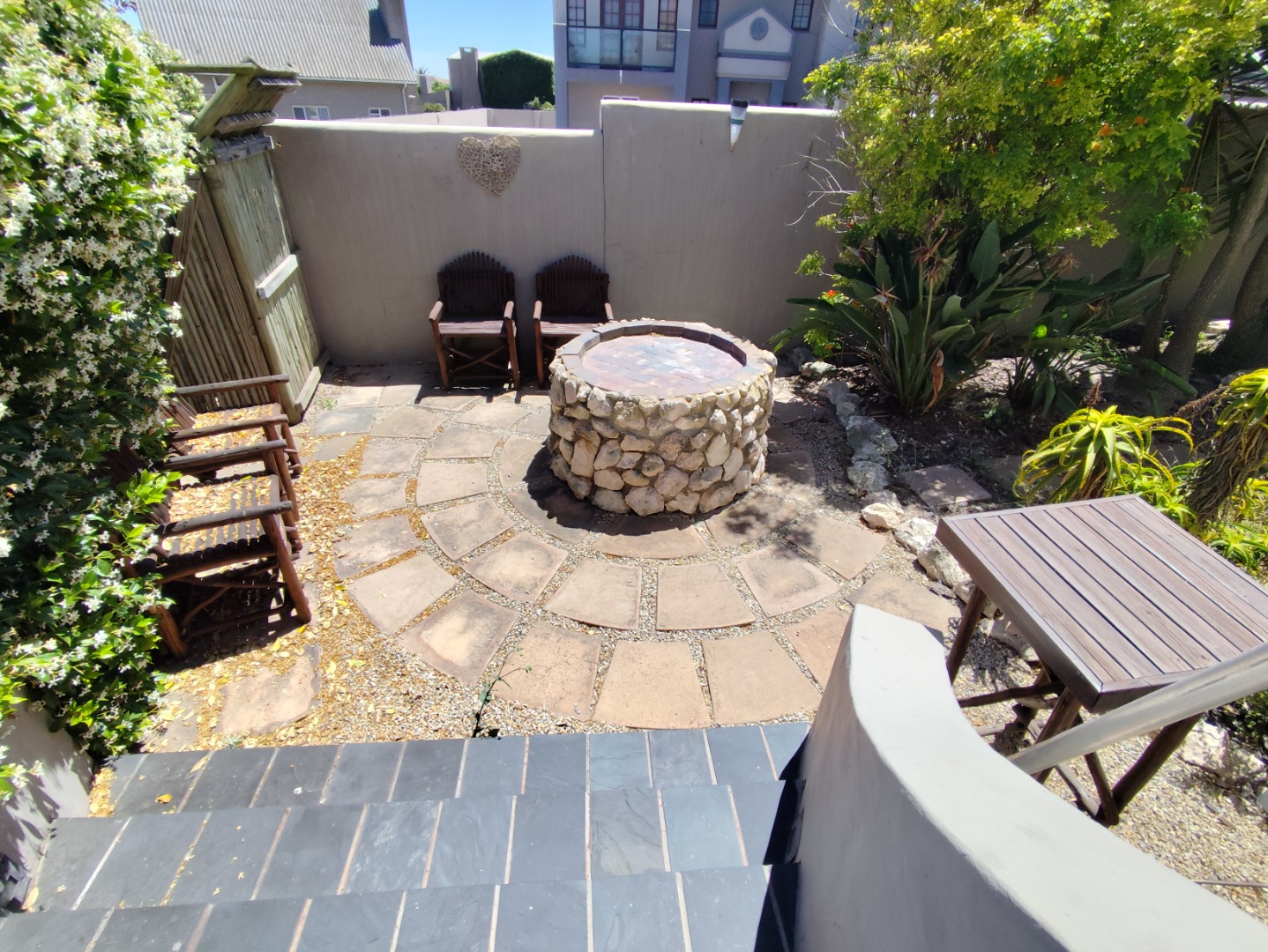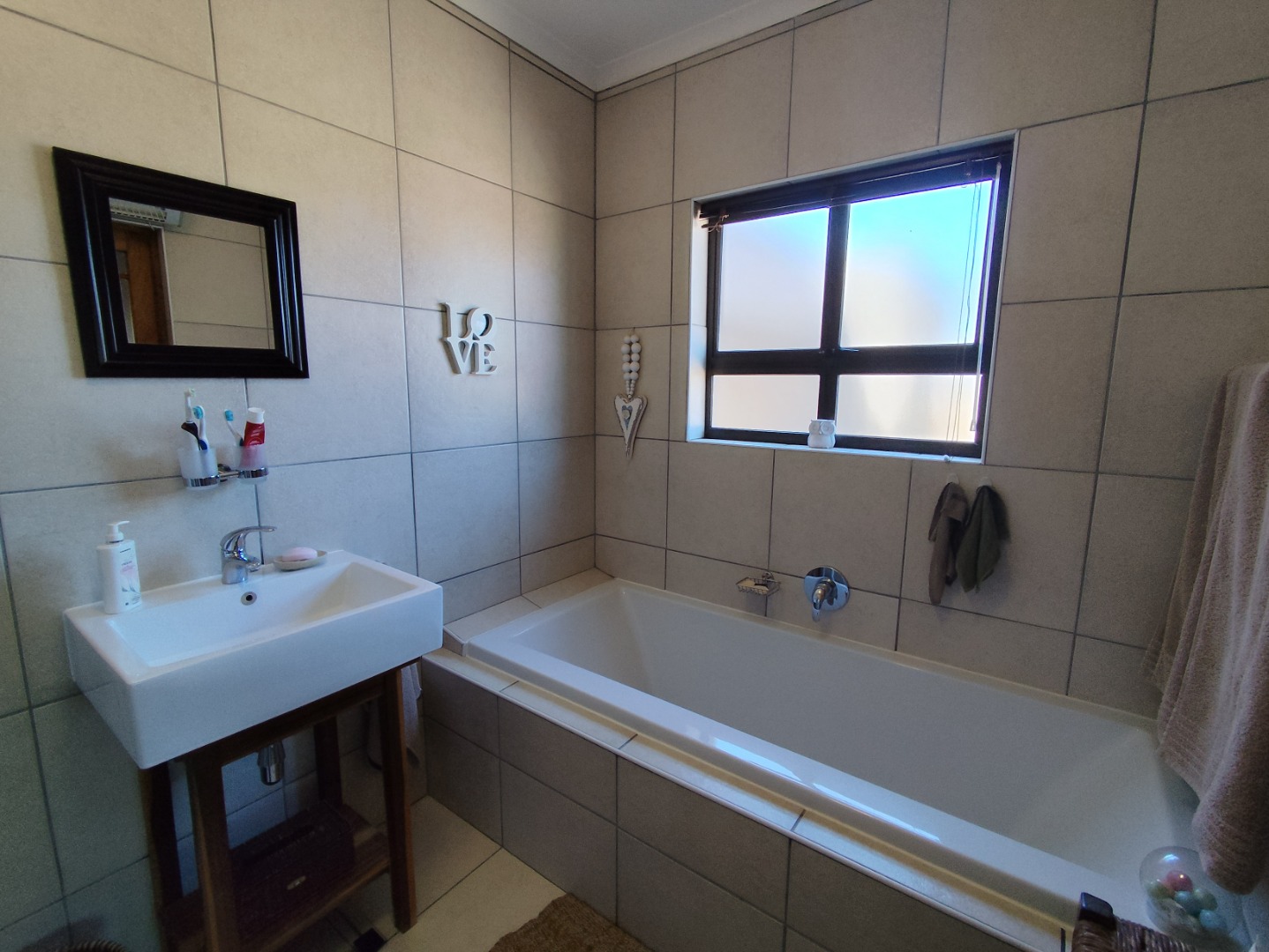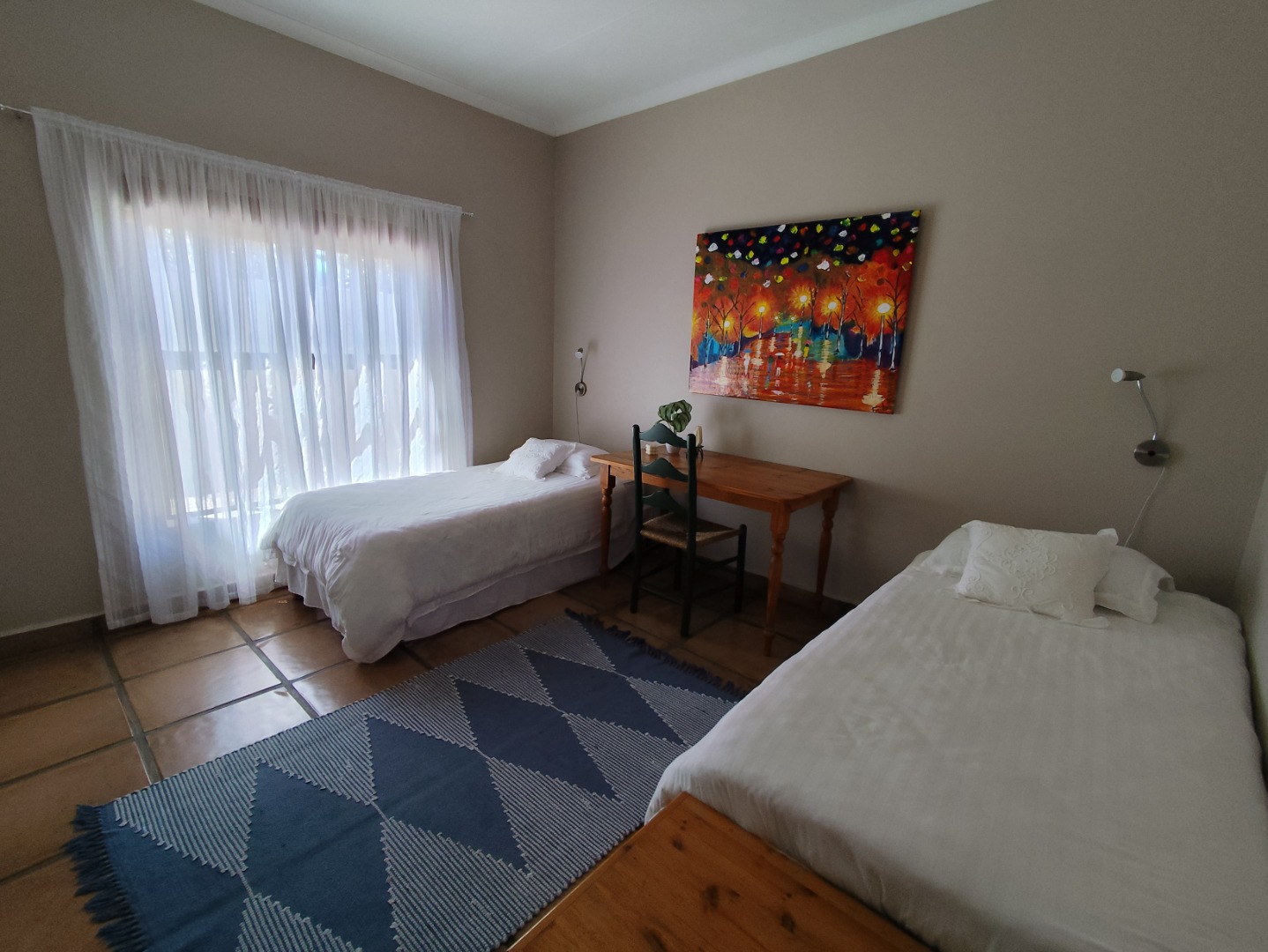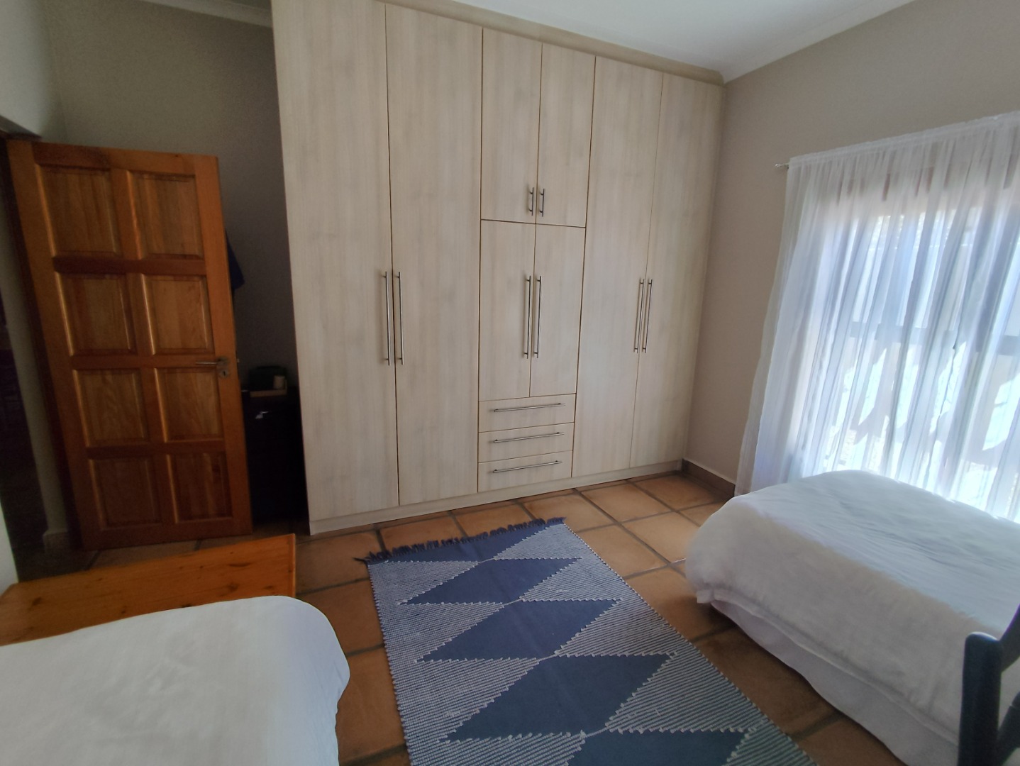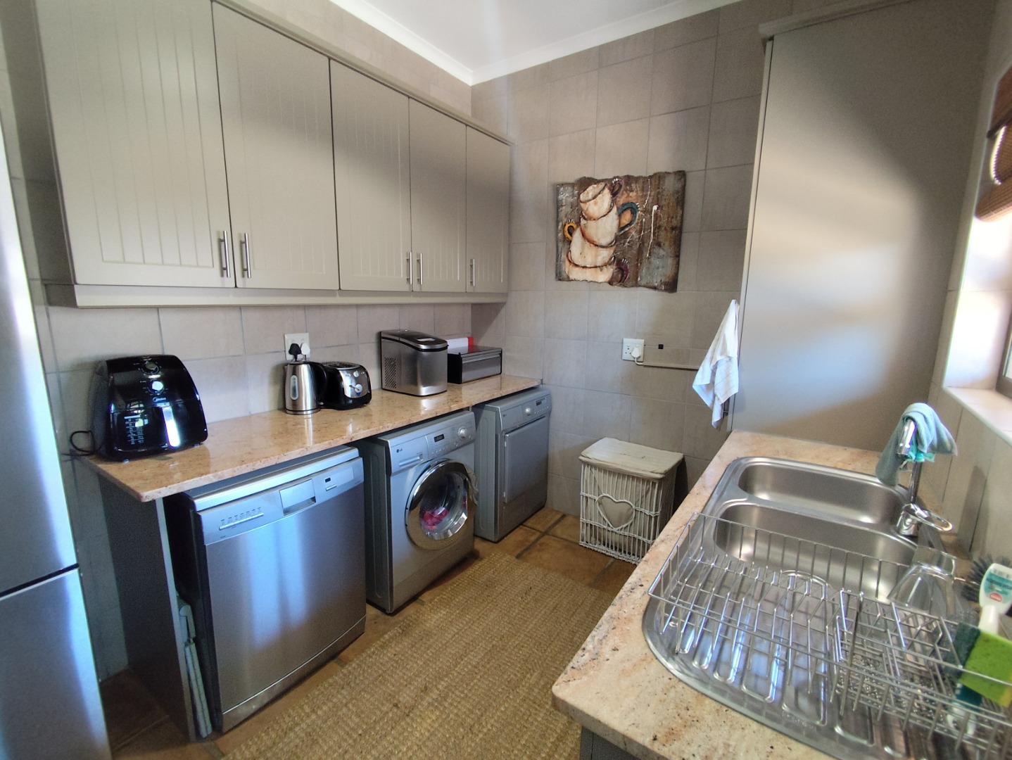 Security includes an alarm system, outdoor beams and riveted windows that retain the clean aesthetic without burglar bars. The low-maintenance garden is established with beautiful trees and paved areas, making outdoor living effortless. Move-in ready and thoughtfully designed, this home offers comfort, character and peace in a sought-after family area of Langebaan.