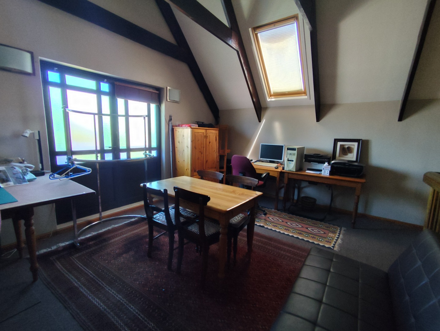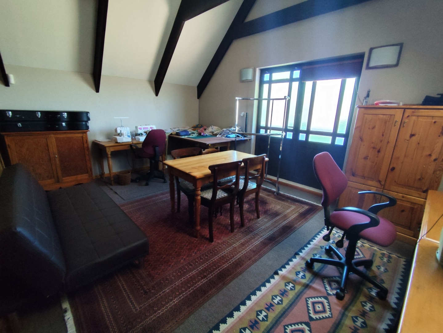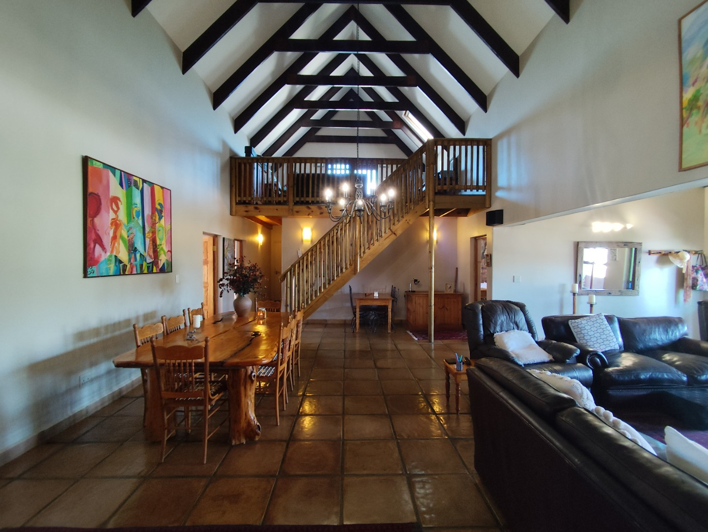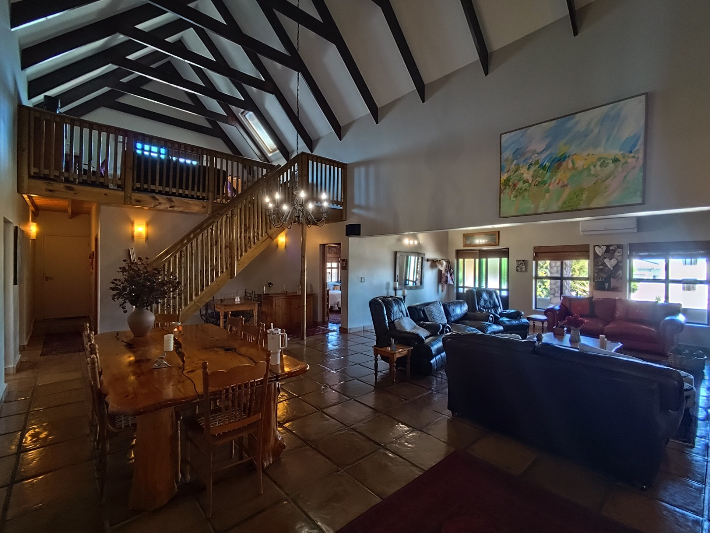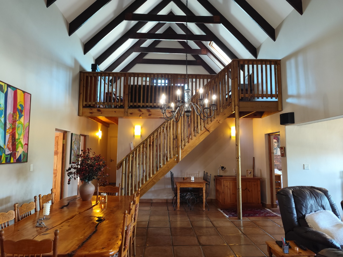 Multiple living spaces add versatility, including a welcoming lounge, a sunny entertainment room with a built-in bar, and a characterful loft ideal for a study or extra sleeping area. The home offers two comfortable family bedrooms, a full bathroom, and a generous main suite with its own en-suite and ample cupboard space.