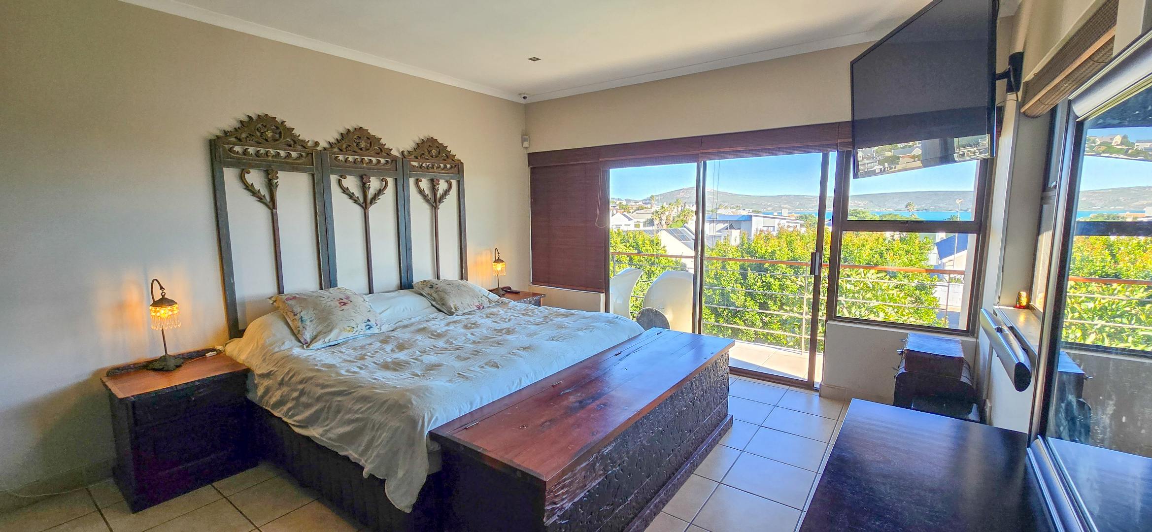 Upstairs, the master suite features a full en-suite bathroom, ample cupboards and lagoon views, while two guest bedrooms share a modern family bathroom. A study with built-in cupboards can easily serve as a fourth bedroom. All rooms are air-conditioned and open onto a wraparound balcony with sweeping views over the lagoon and pool.