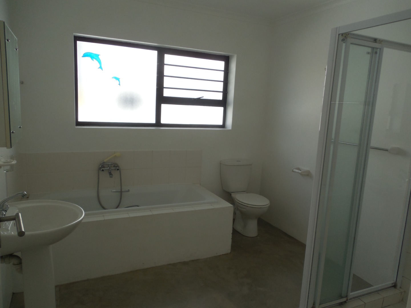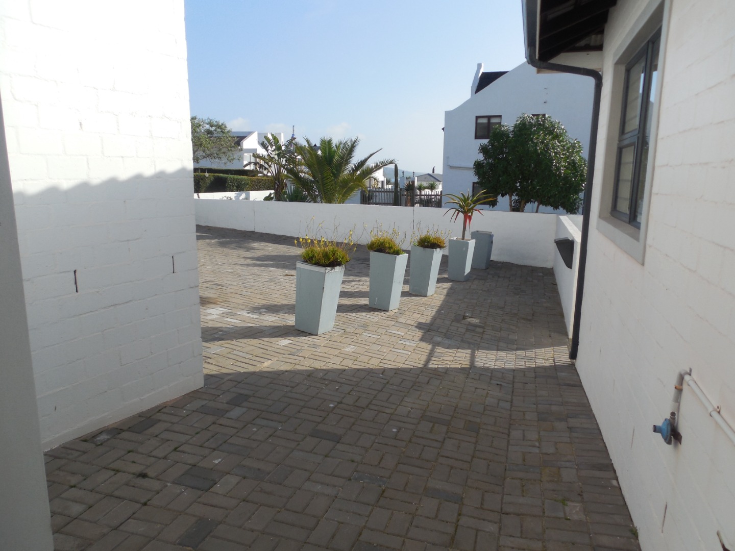 Step outside to a private, walled outdoor space, which includes a paved courtyard or driveway and a garden area, perfect for relaxation or outdoor activities. The property is unfurnished, allowing tenants to personalize the space to their taste. Security features include burglar bars and a perimeter fence, ensuring a secure living environment. This suburban Langebaan property offers a comfortable and practical lifestyle.