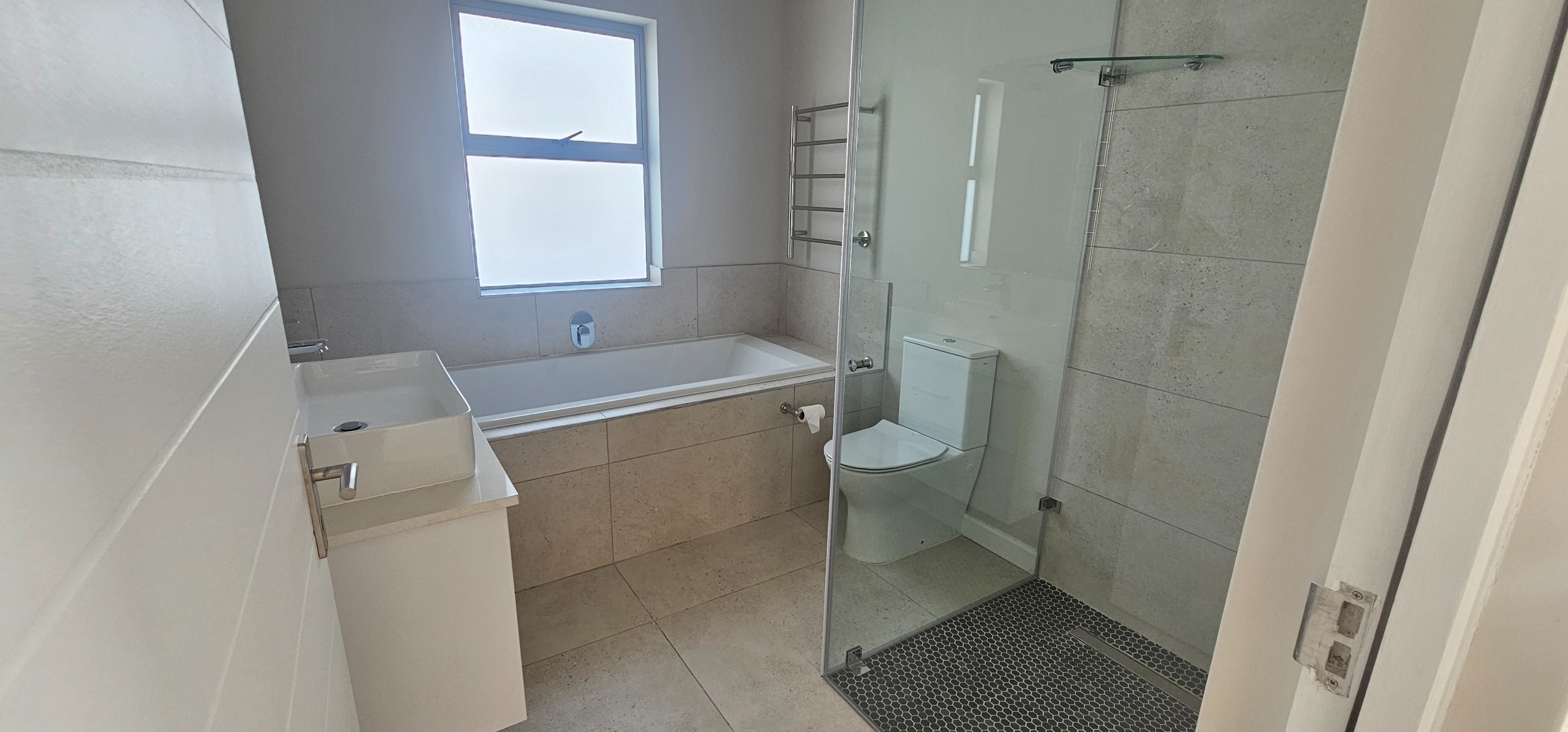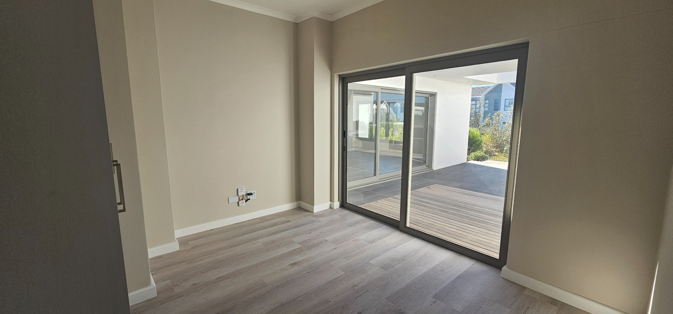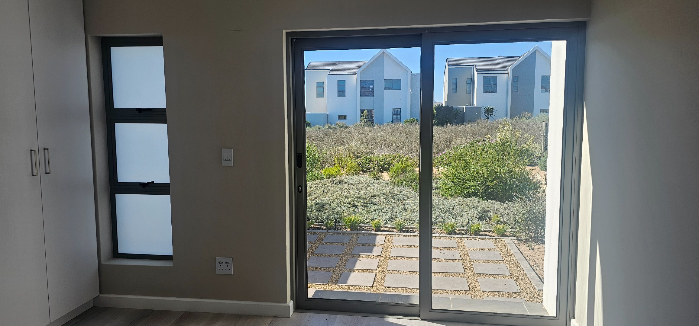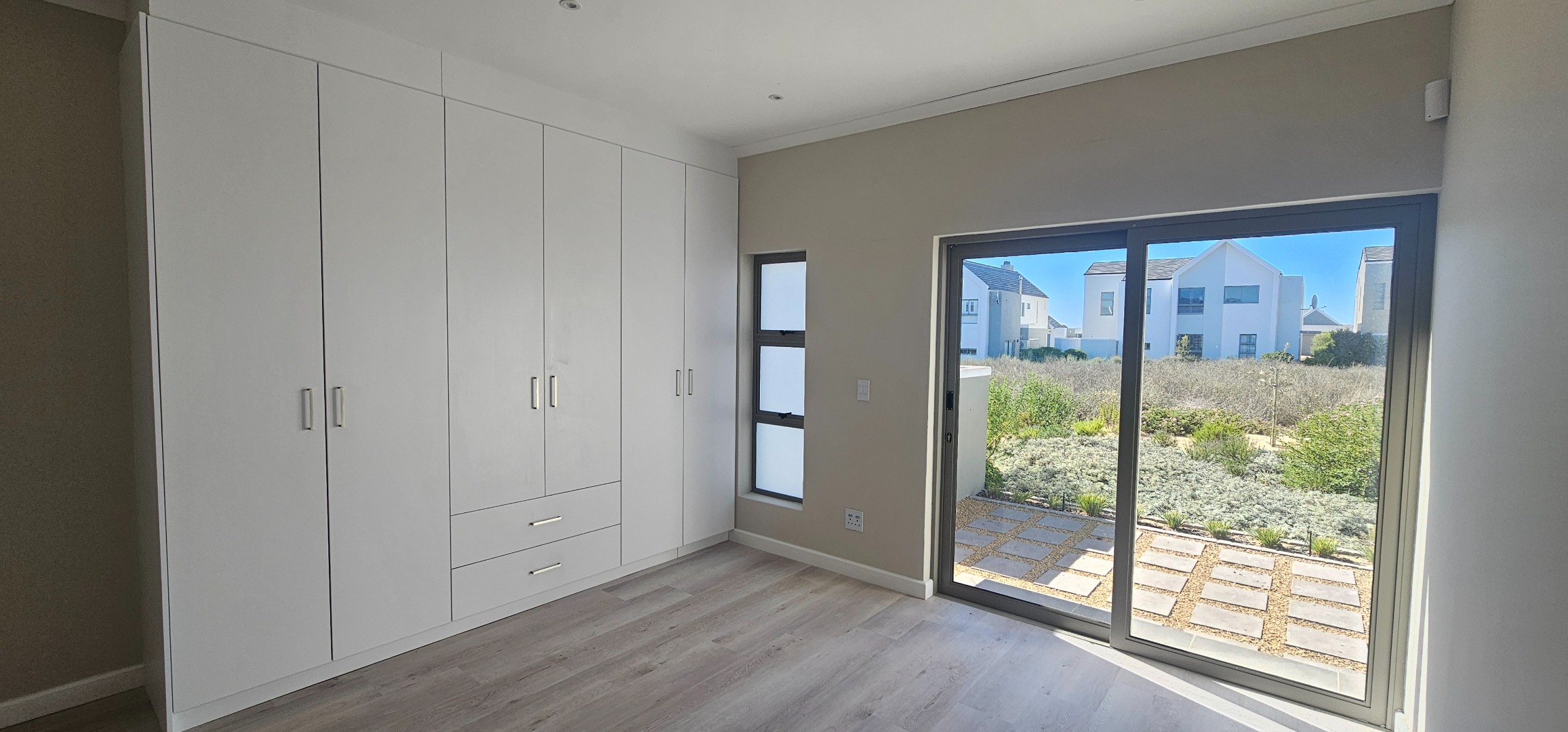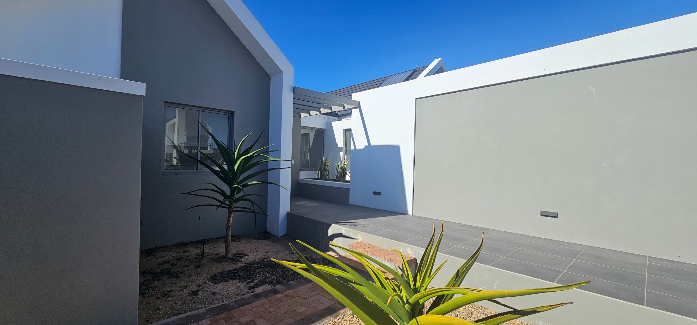 Modern 3-bedroom, 2-bathroom residence is situated within the prestigious Langebaan Country Estate. Designed with a contemporary aesthetic, the home features a well-appointed open-plan layout that seamlessly integrates living, dining, and kitchen areas. The property includes a double garage and two additional parking spaces, providing ample accommodation for vehicles. An entrance hall welcomes residents into a space characterized by clean lines and modern finishes, setting a comfortable tone throughout.